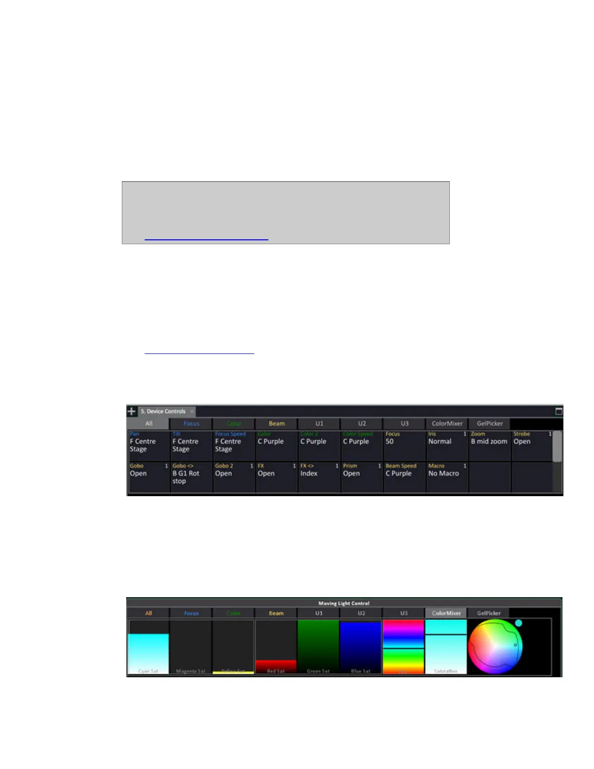 Virtual controls tabs: ColorMixer and GelPicker