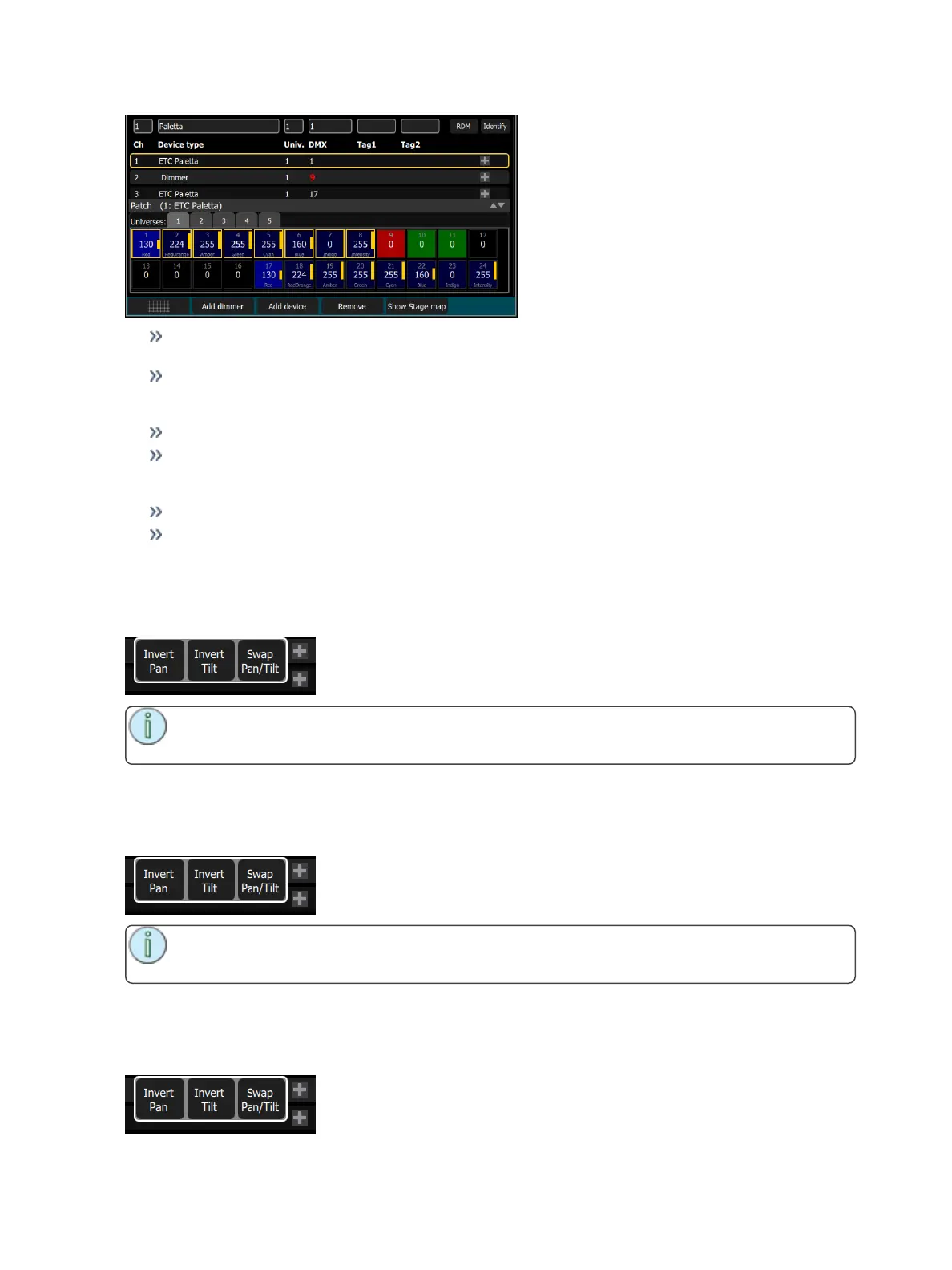 Switches the pan control to run in the opposite direction. Click on the + button in patch for the device you