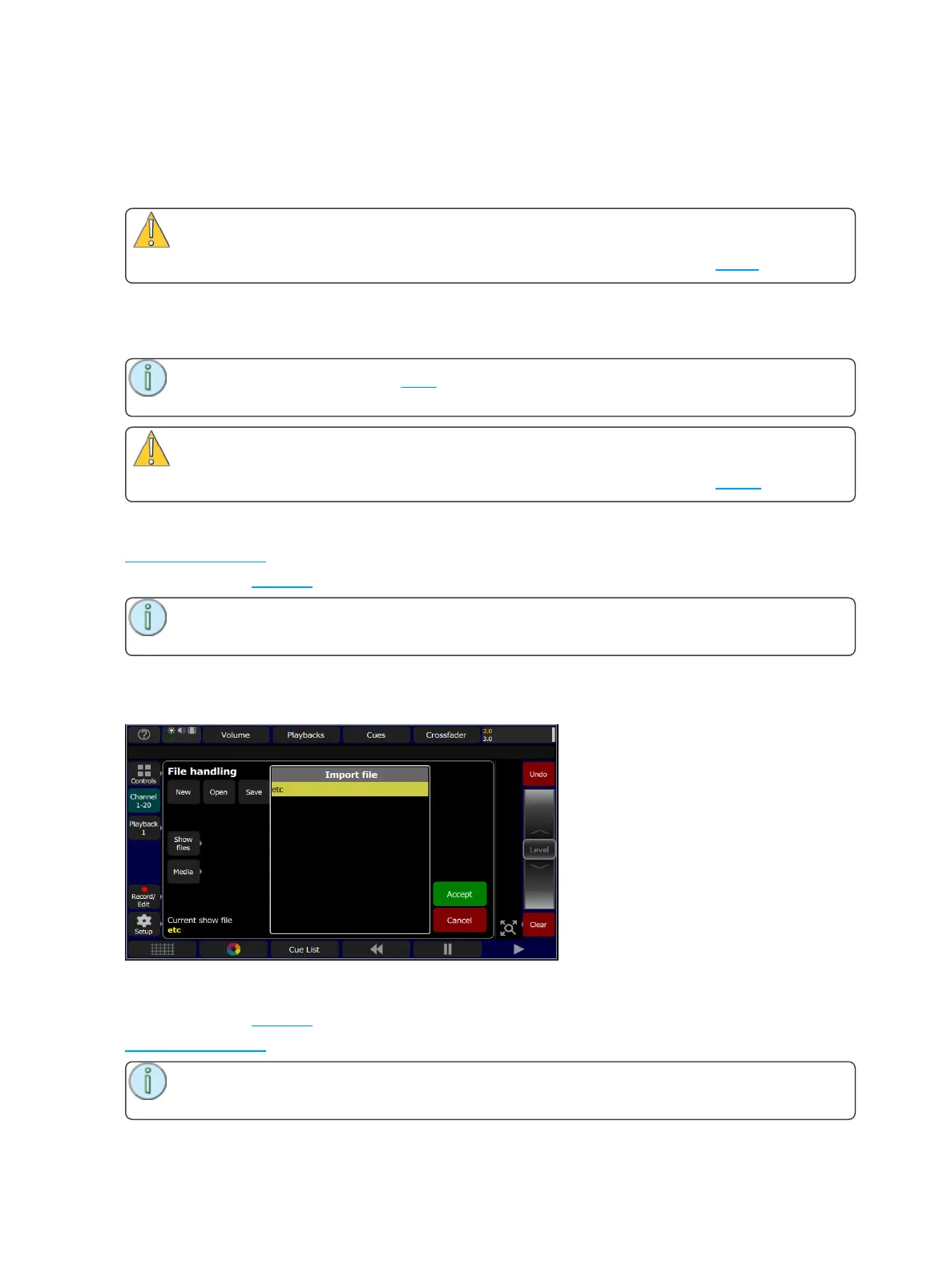 When the Import button is pressed, the following screen will display showing the available show files.