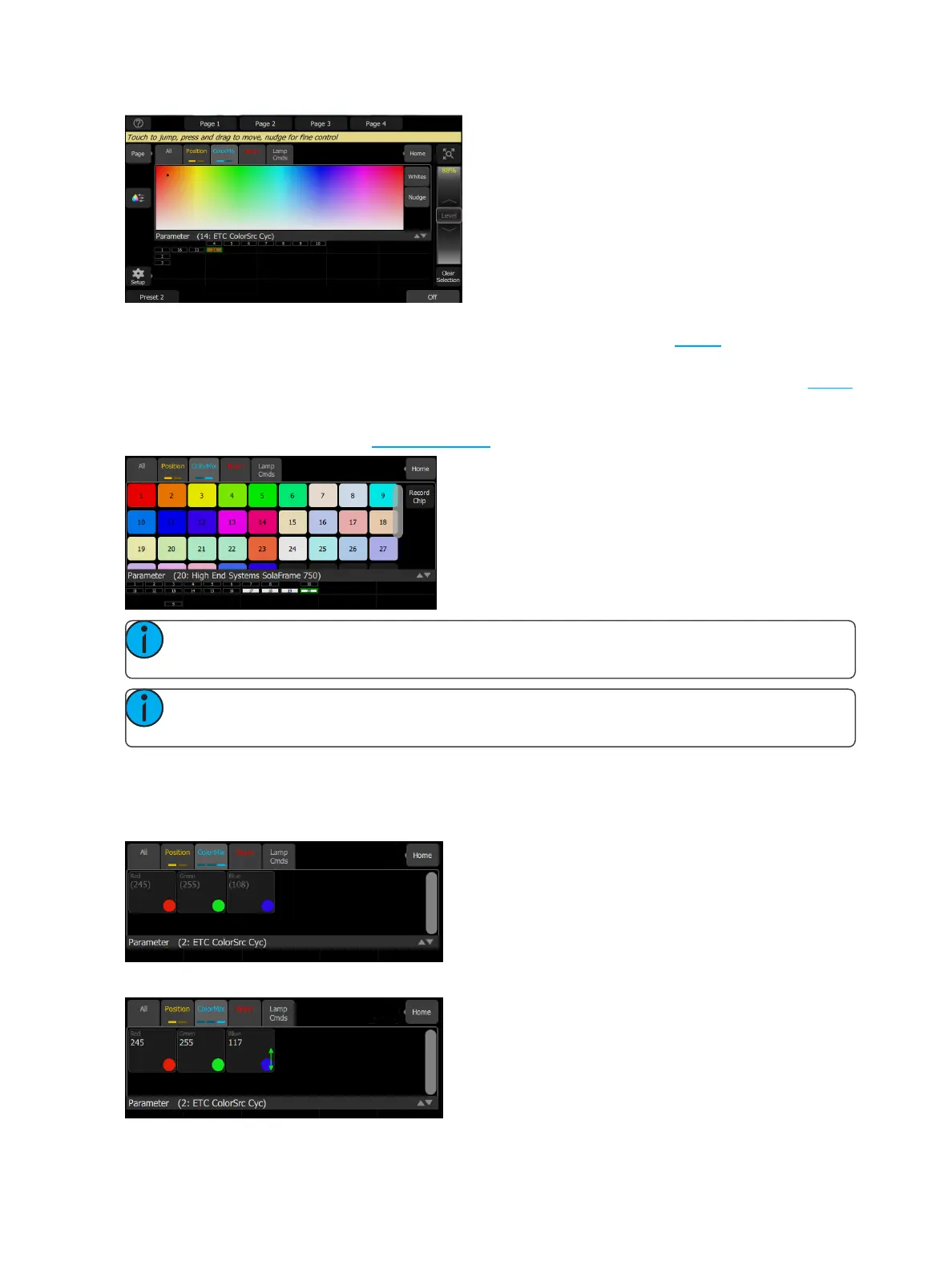 ness) from top to bottom. The color picker can be set to colors or whites mode. See Whites for more inform-