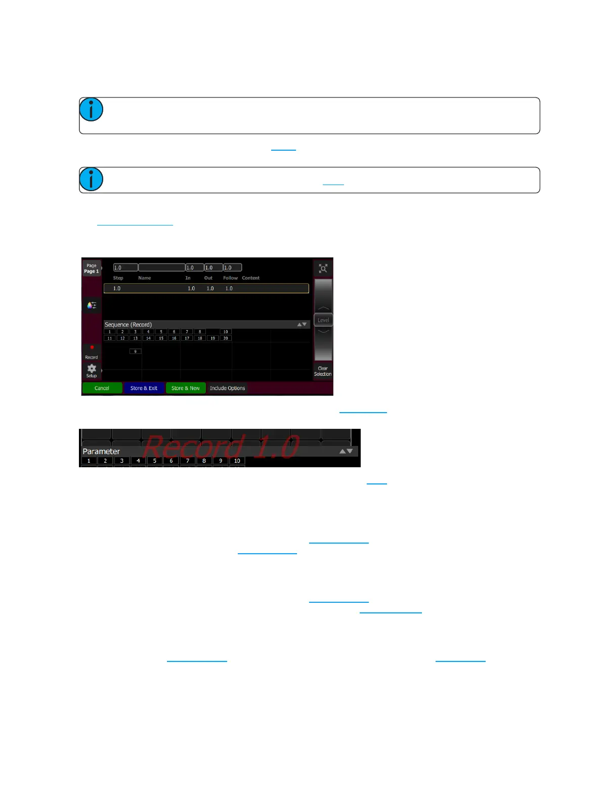 The current lighting levels will be stored in the selected sequence step and recording will be remain open so