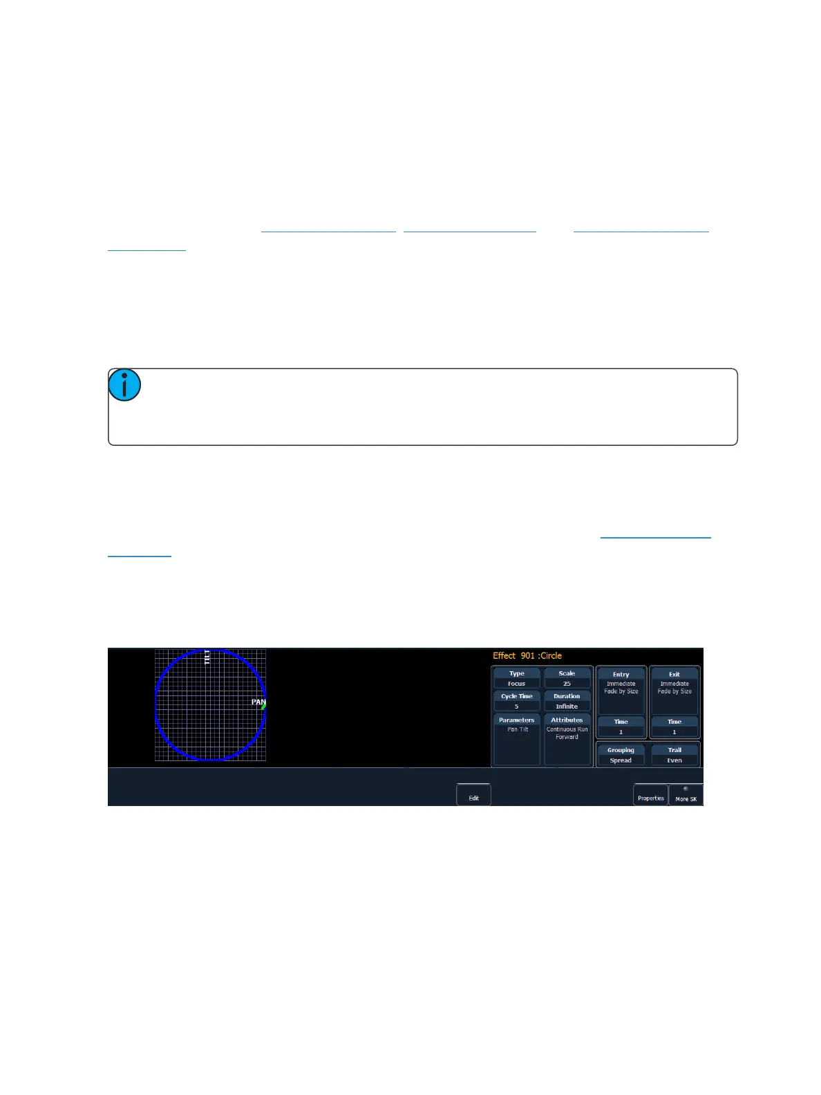 Focus effects are designed to impact a channel’s pan and tilt parameters. These are represented in