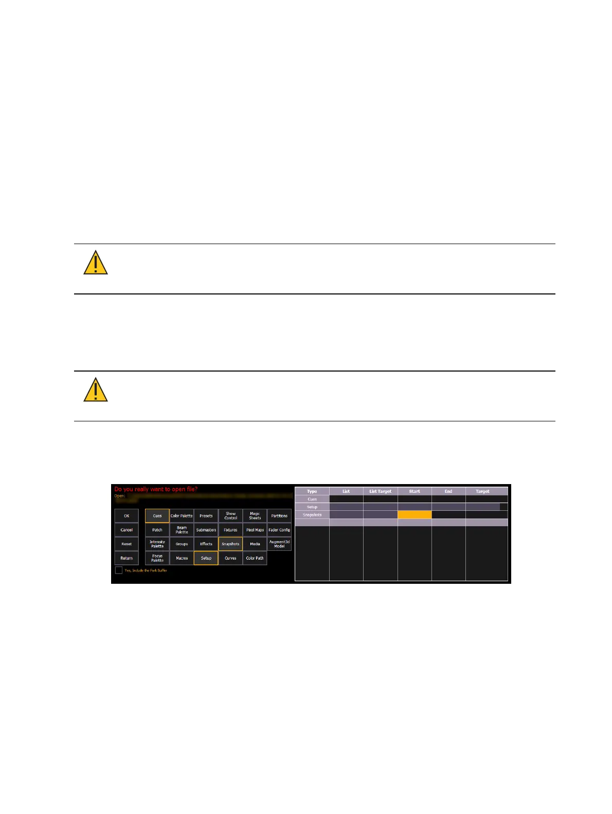 From this screen you can select which components of the show file you wish to load. The