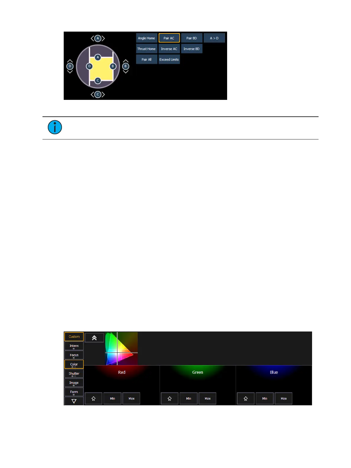 Depending upon the specific device, color can be established manually with the encoders