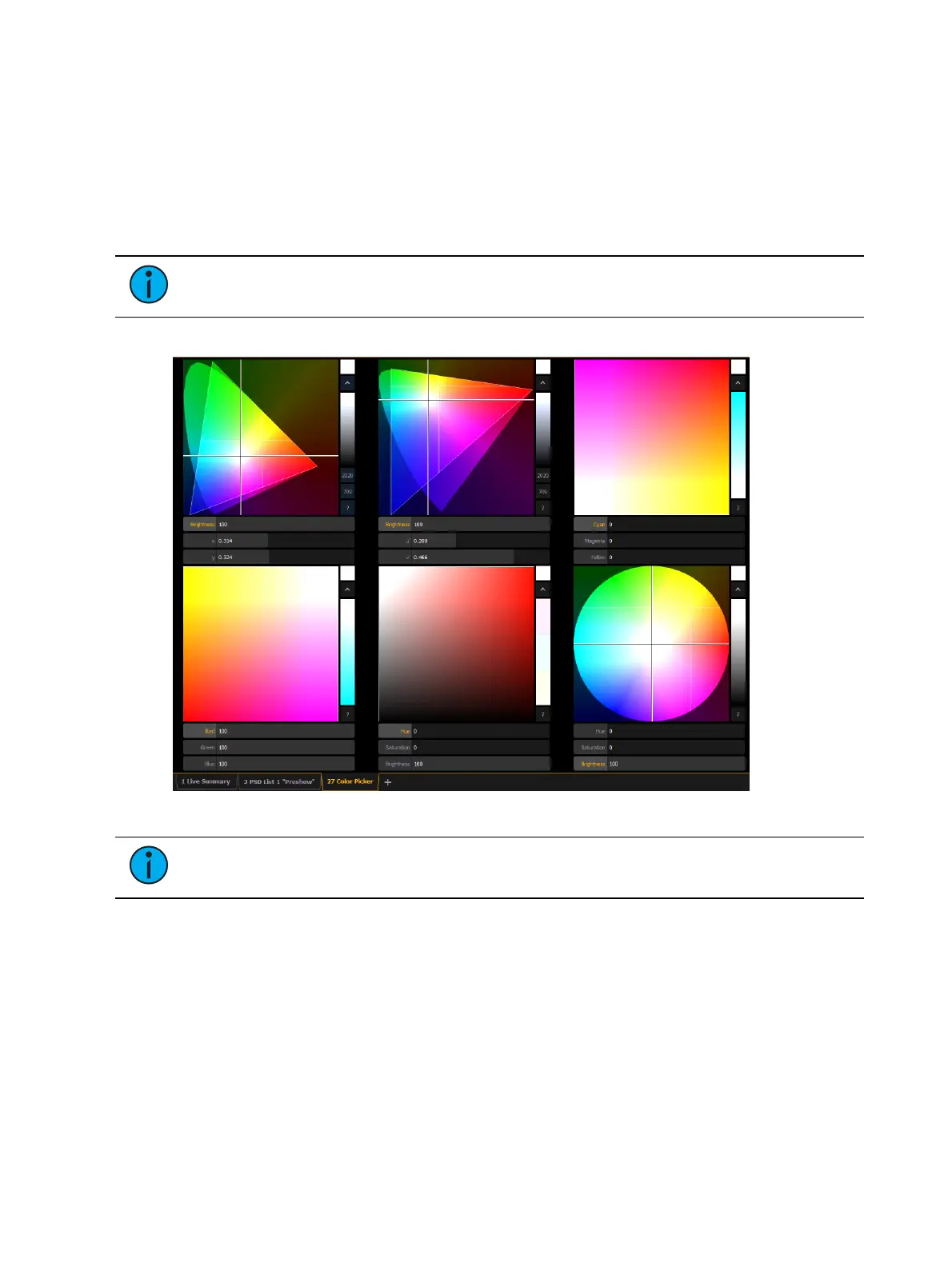 When the color picker is first opened, the CIE xy color space and the gel picker will open by