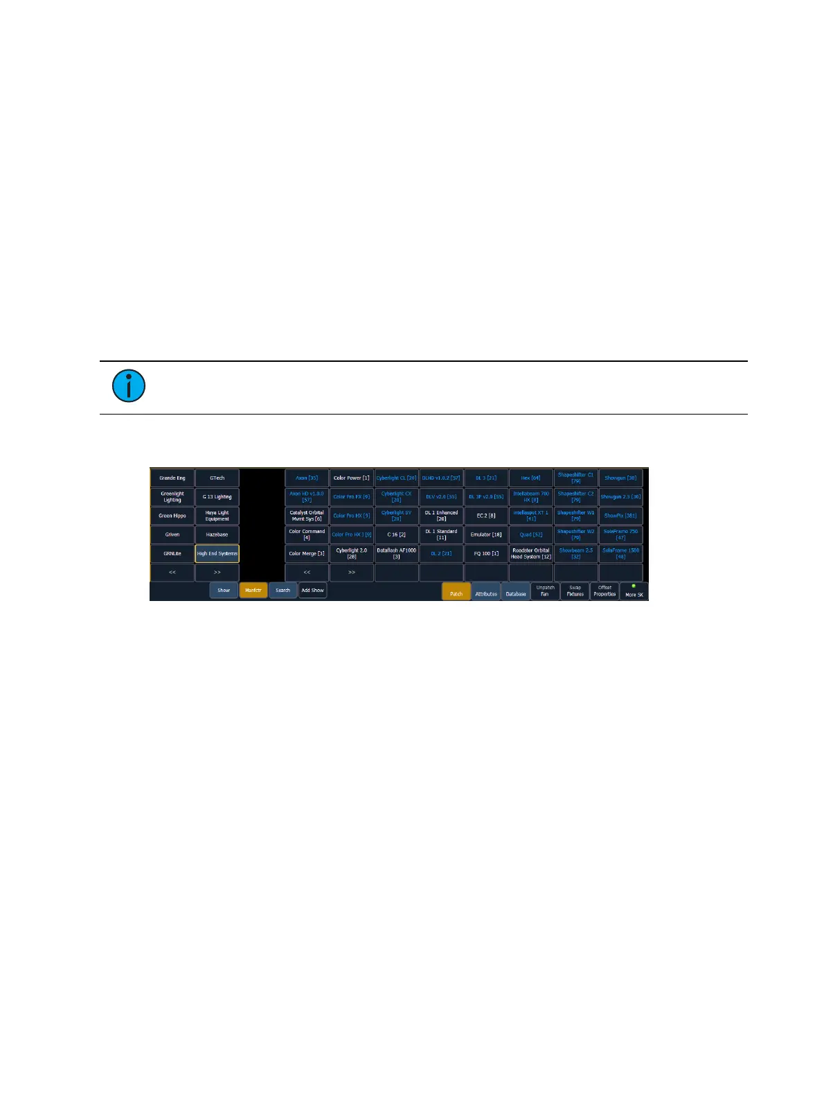 already patched in the show, your favorites, and default devices. {Manfctr} shows all fixtures or