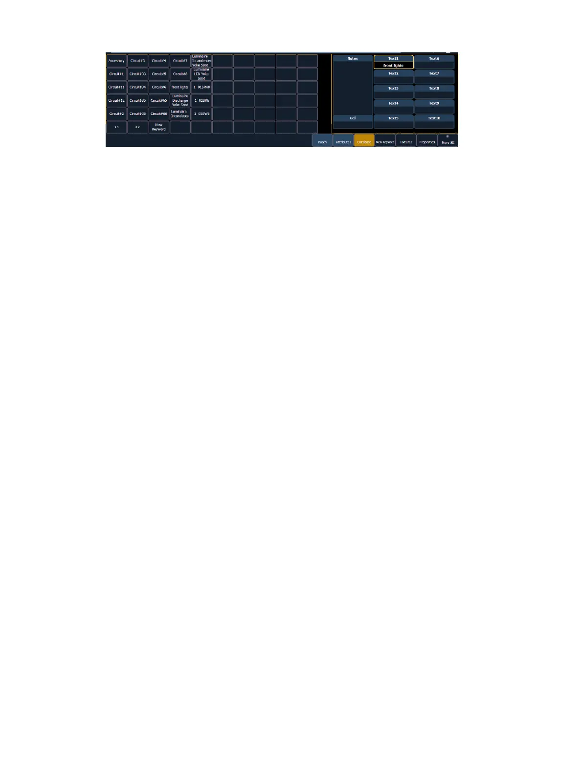 1. In Patch >Database, select a channel or range of channels in the command line.