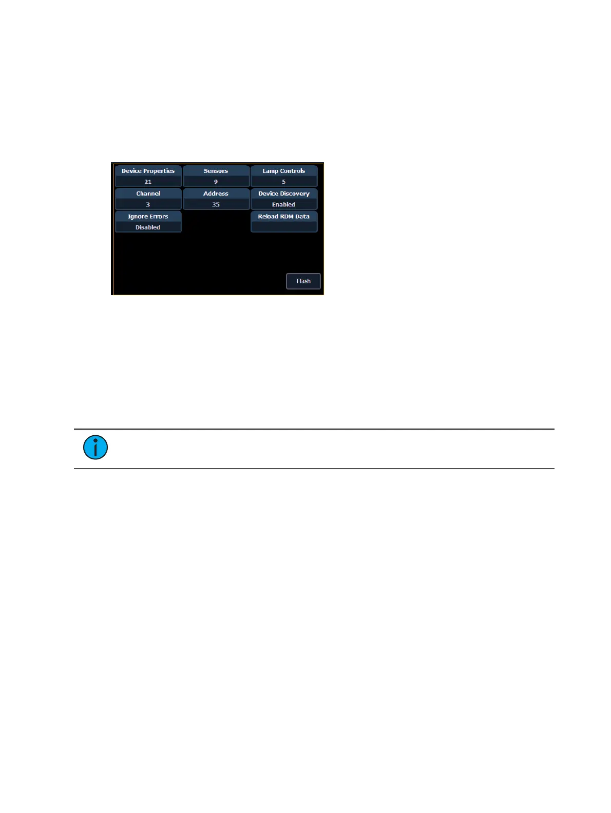 {Flash} - triggers the identify function of the RDM device. The identify function may defer