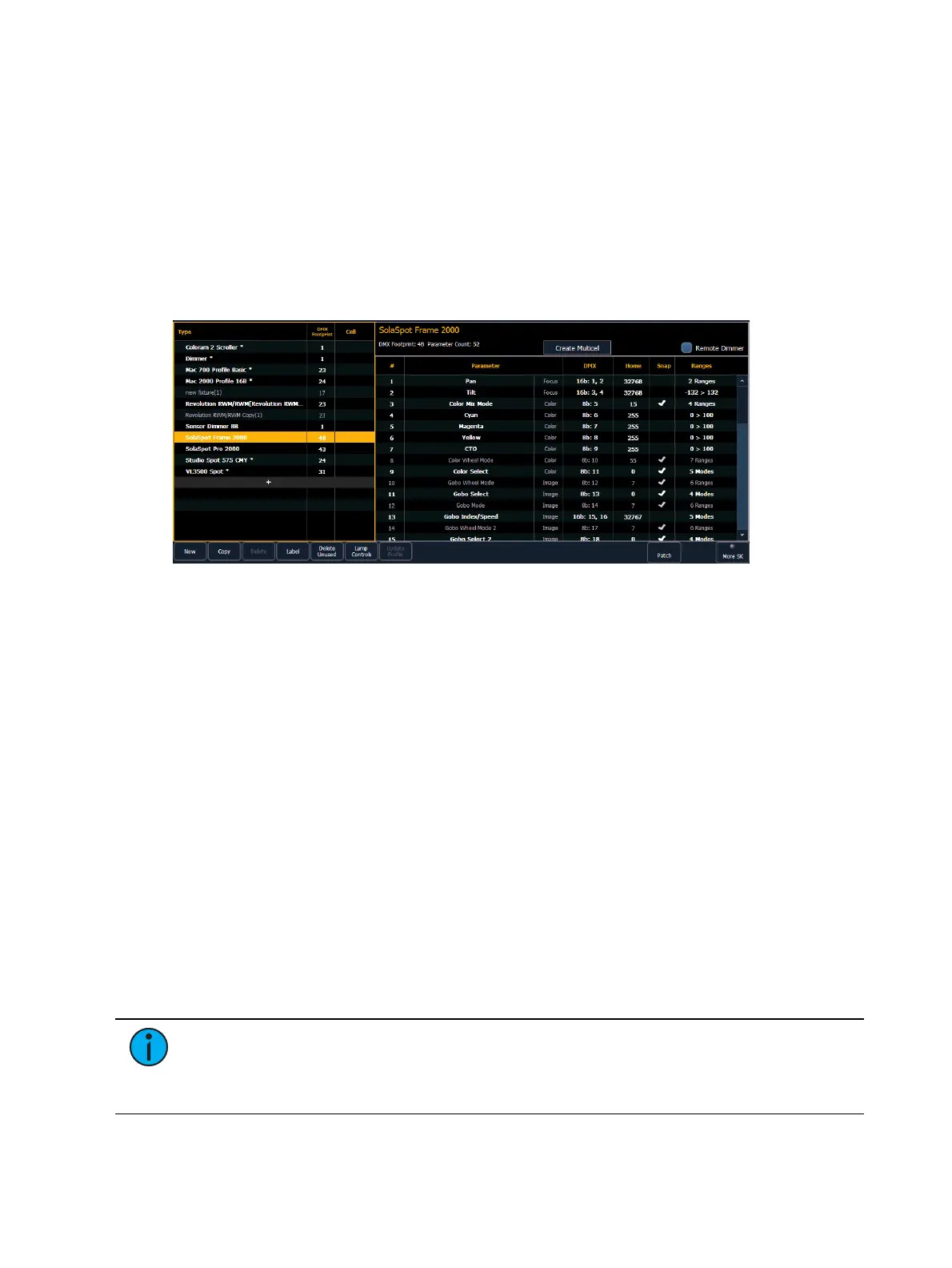 1. Use the [Page] keys, mouse, or touchscreen to select the new fixture.