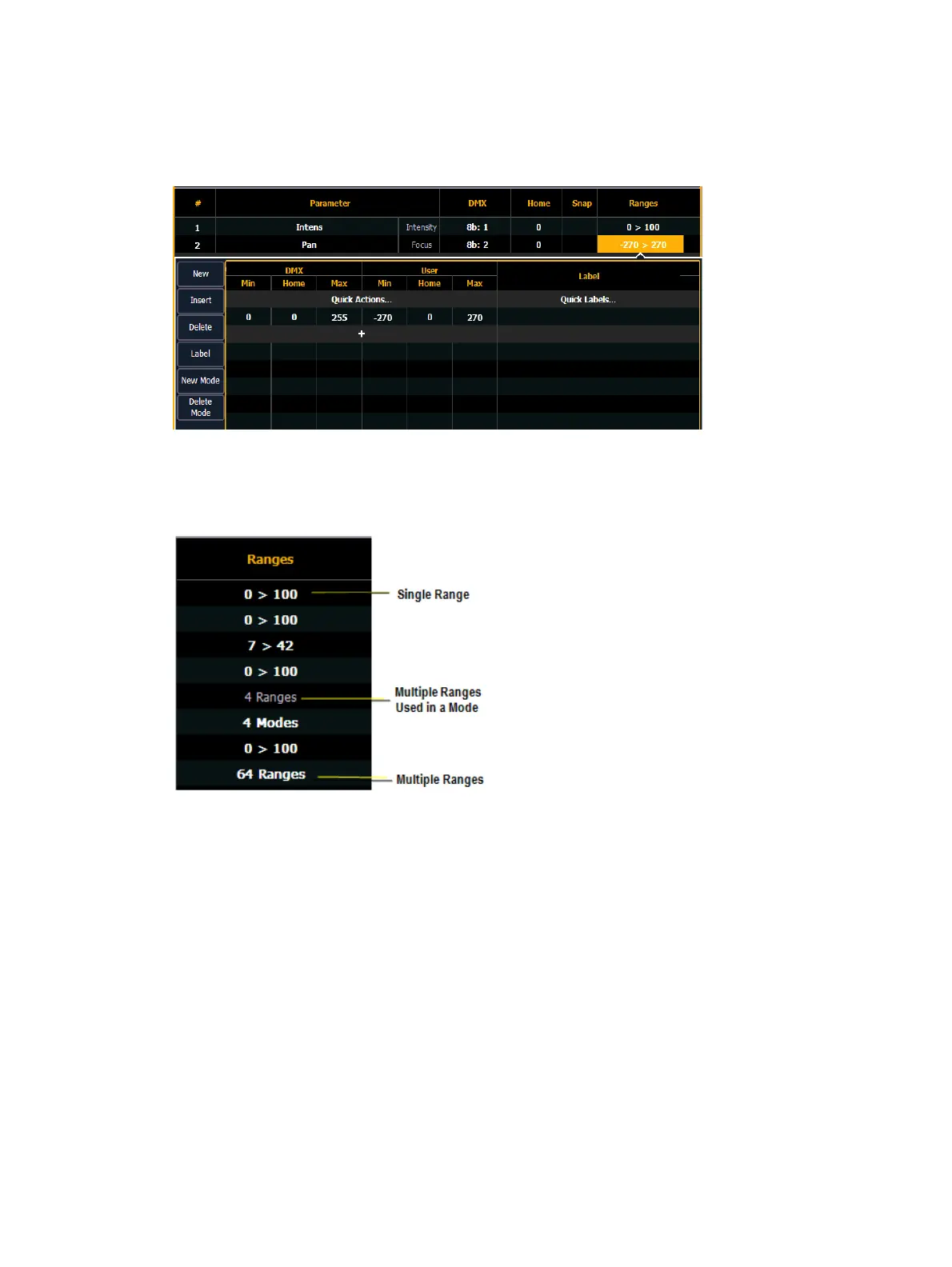 DMX Min - enter the minimum value (0 through 255) for the range slot you are