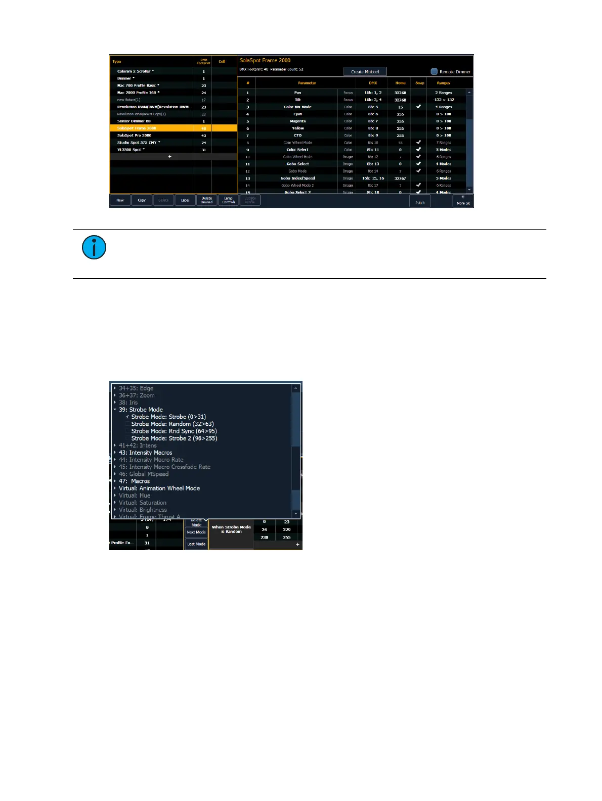 modes of the fixture. For example, if gobo wheel has ranges of index, rotate, and shake, and