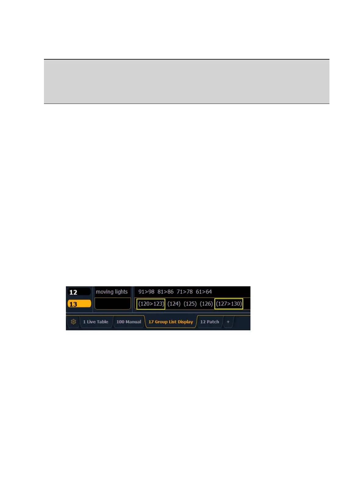 [Shift] & [/] [1] [Thru] [4] [Shift] & [/] [Record] [Group] [2] [Enter]