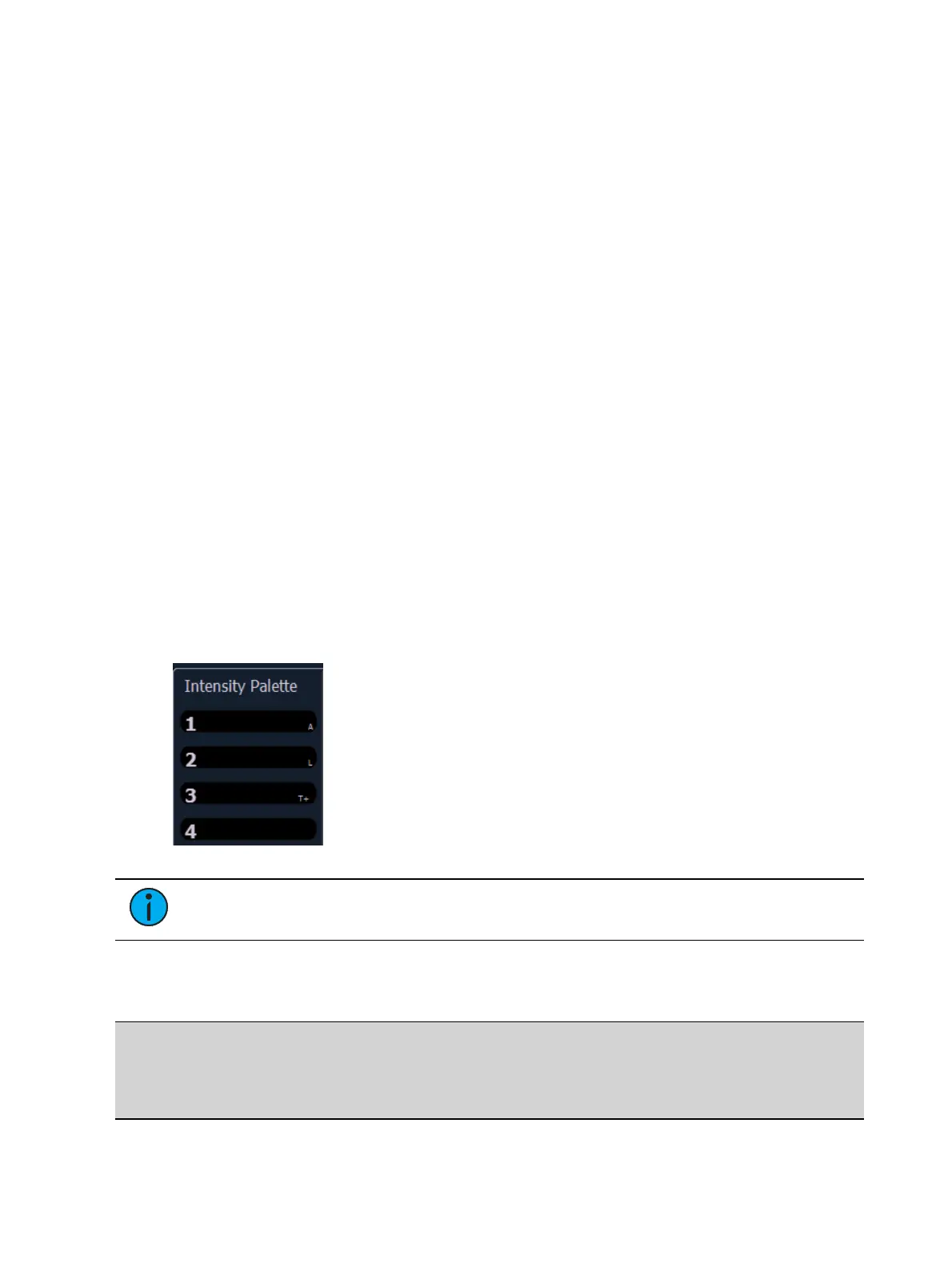 When you press the Intensity palette button twice, a list view for the Intensity palette type is