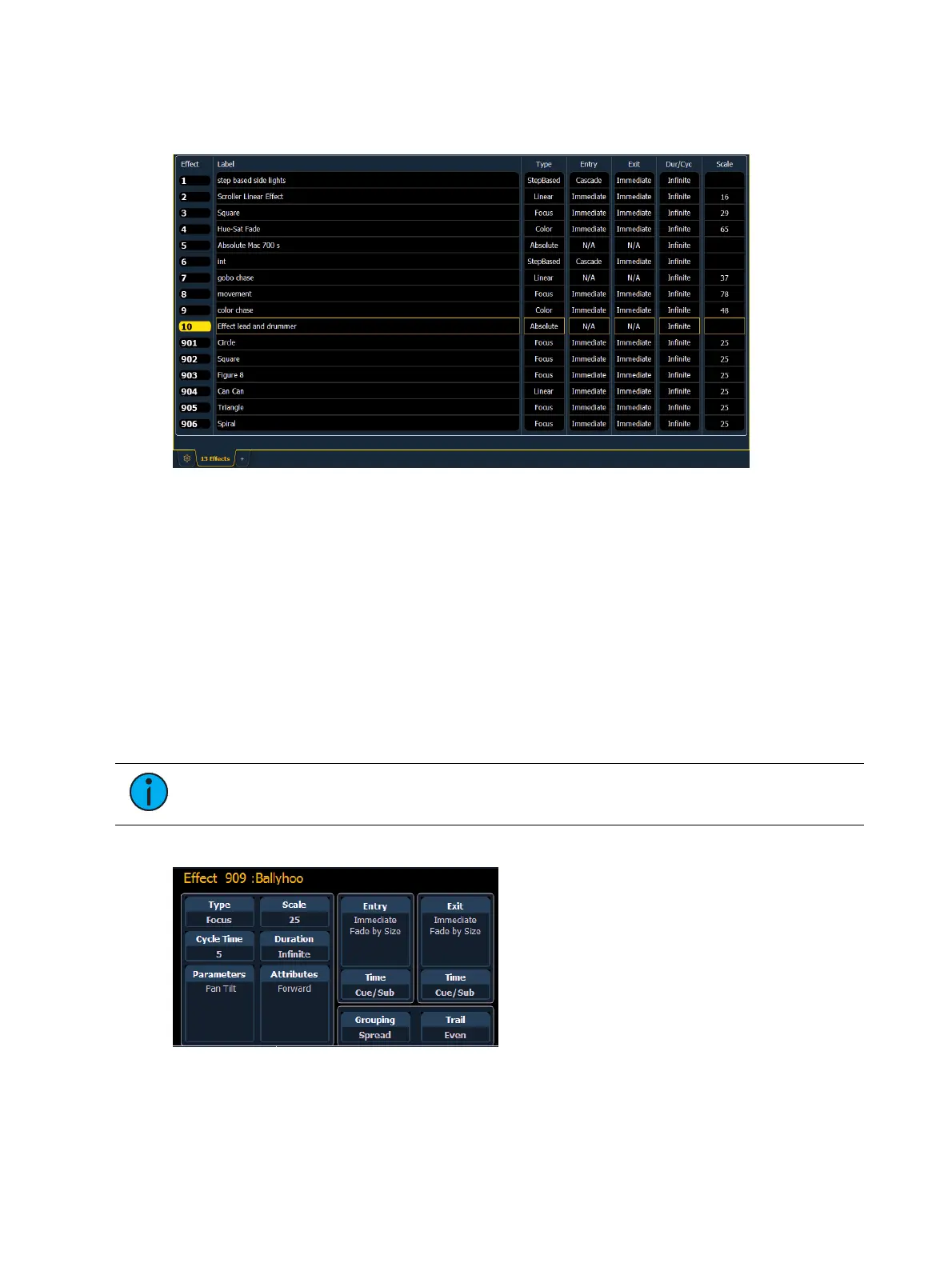 When viewing the effect list, the selected effect is displayed in the CIA. The effect
