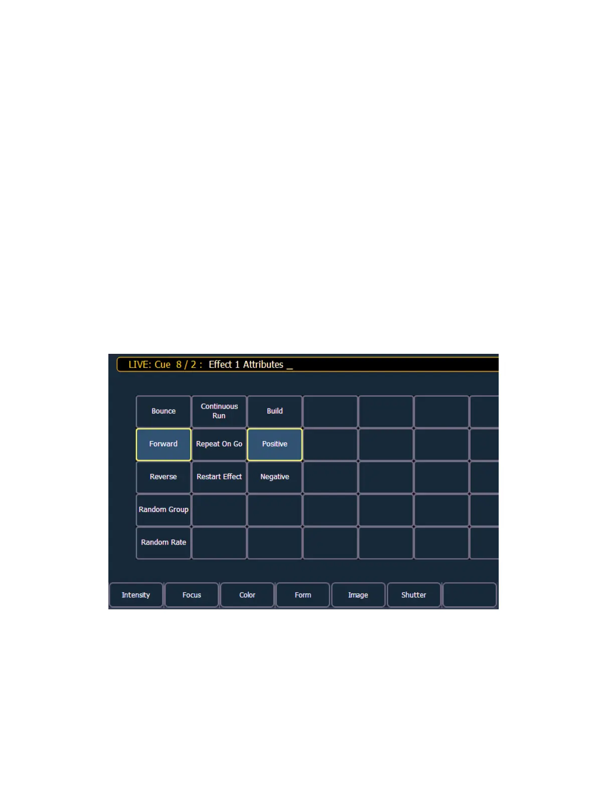 The properties of an effect that can be modified at a cue or sub level will display at the bottom