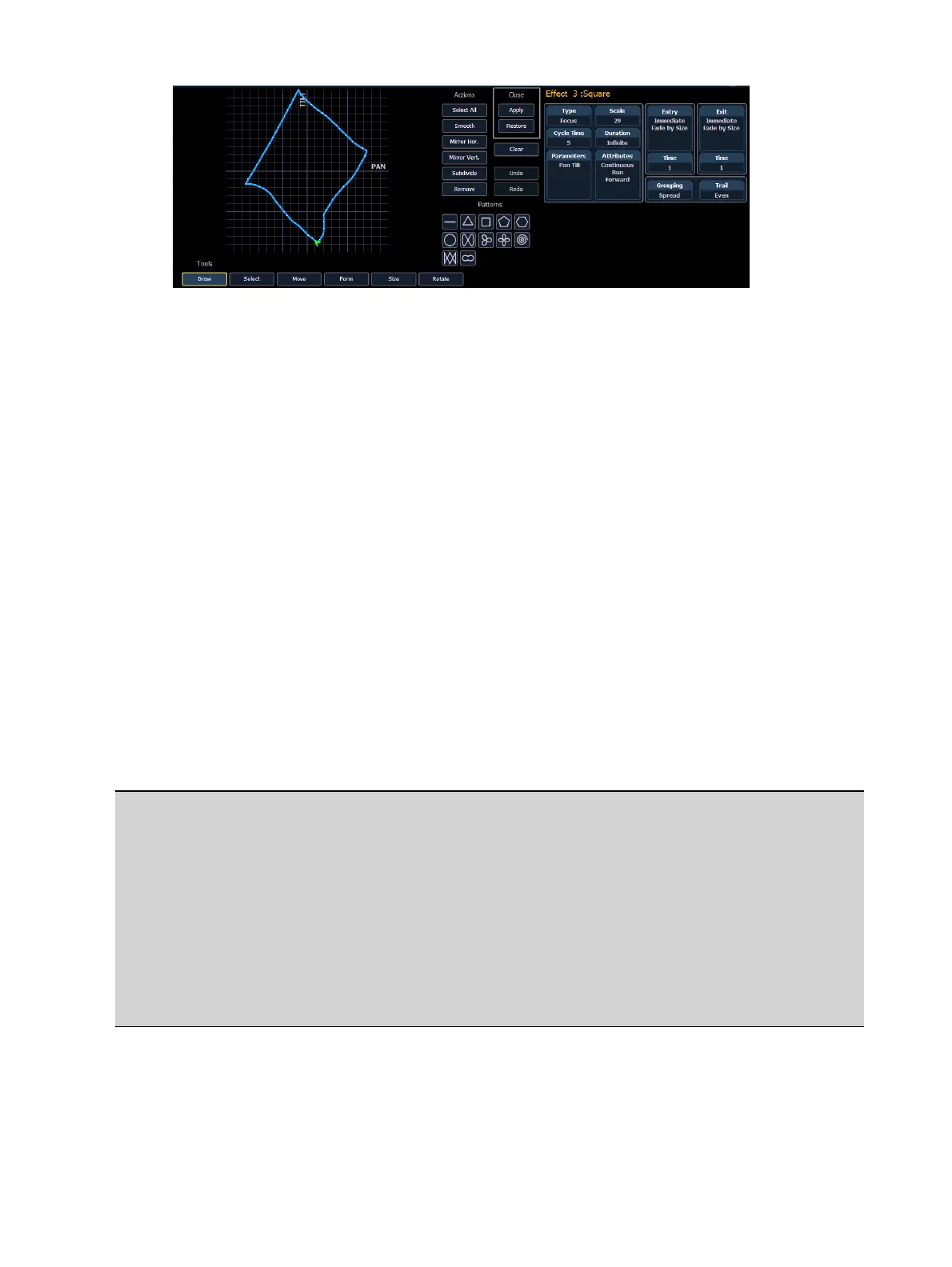 Draw - draw a new line for linear effects or append points to focus effects