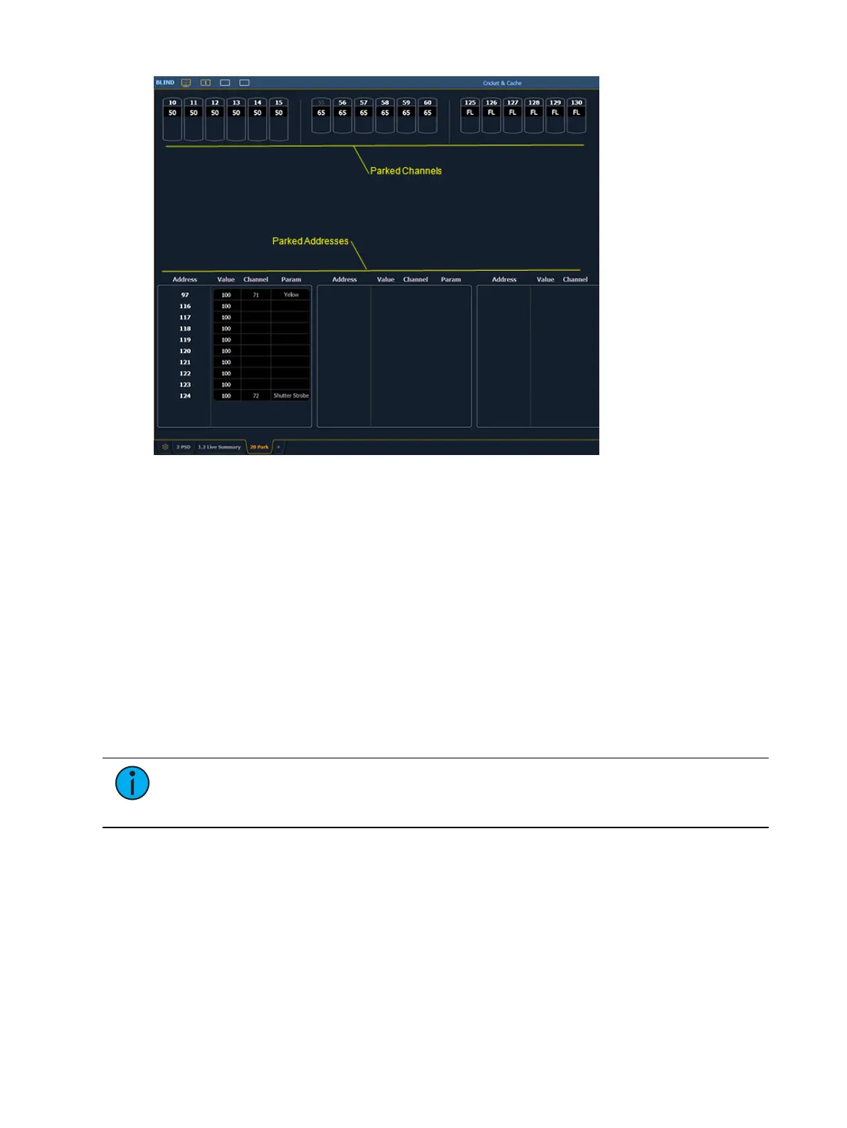 {Select Active} [Park] [Enter] - clears all parked channel parameter values.