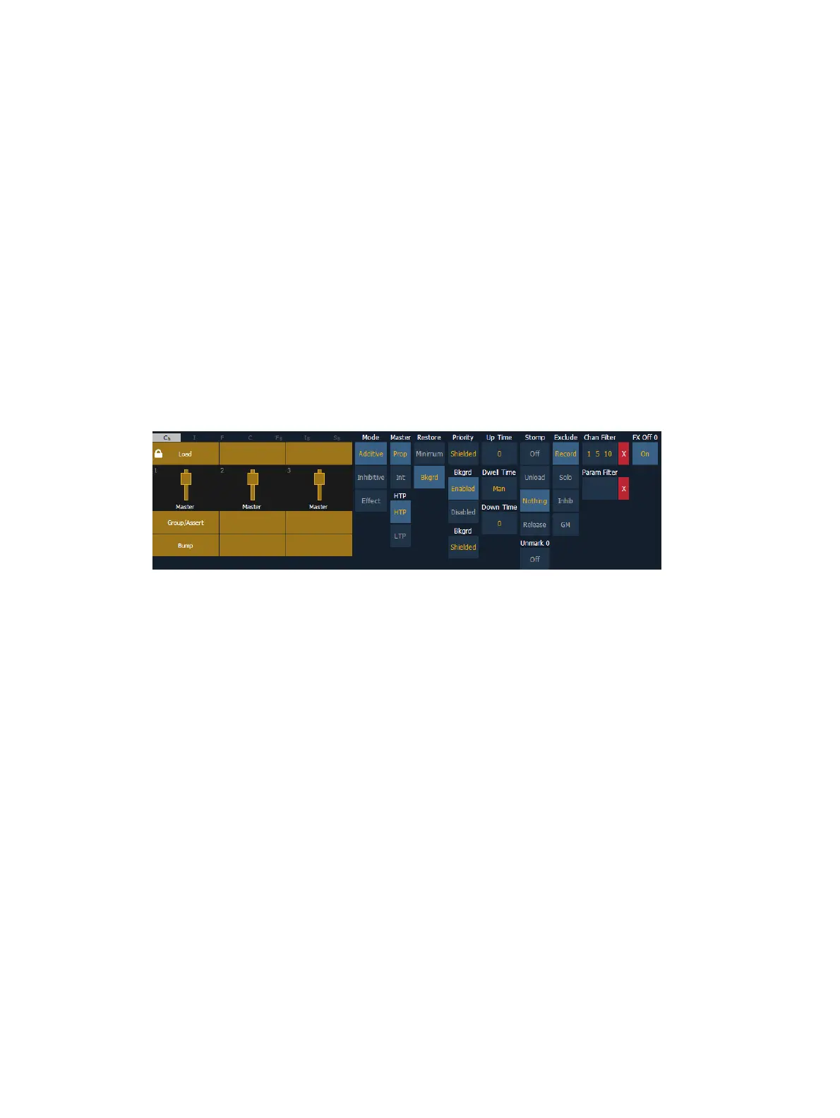 output) or an effect submaster. Element defaults to submasters being additive.