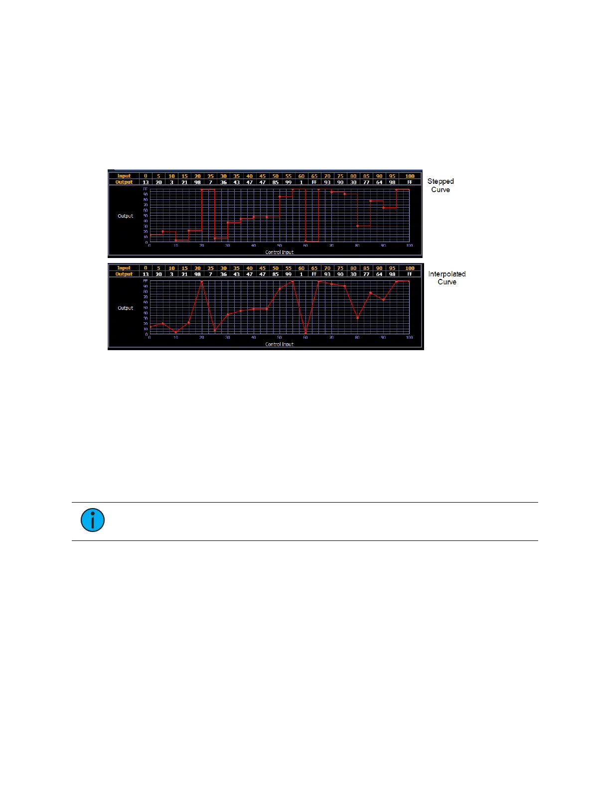fade calculations. Once added to a cue, the curve number appears in the cue’s “Curve” column