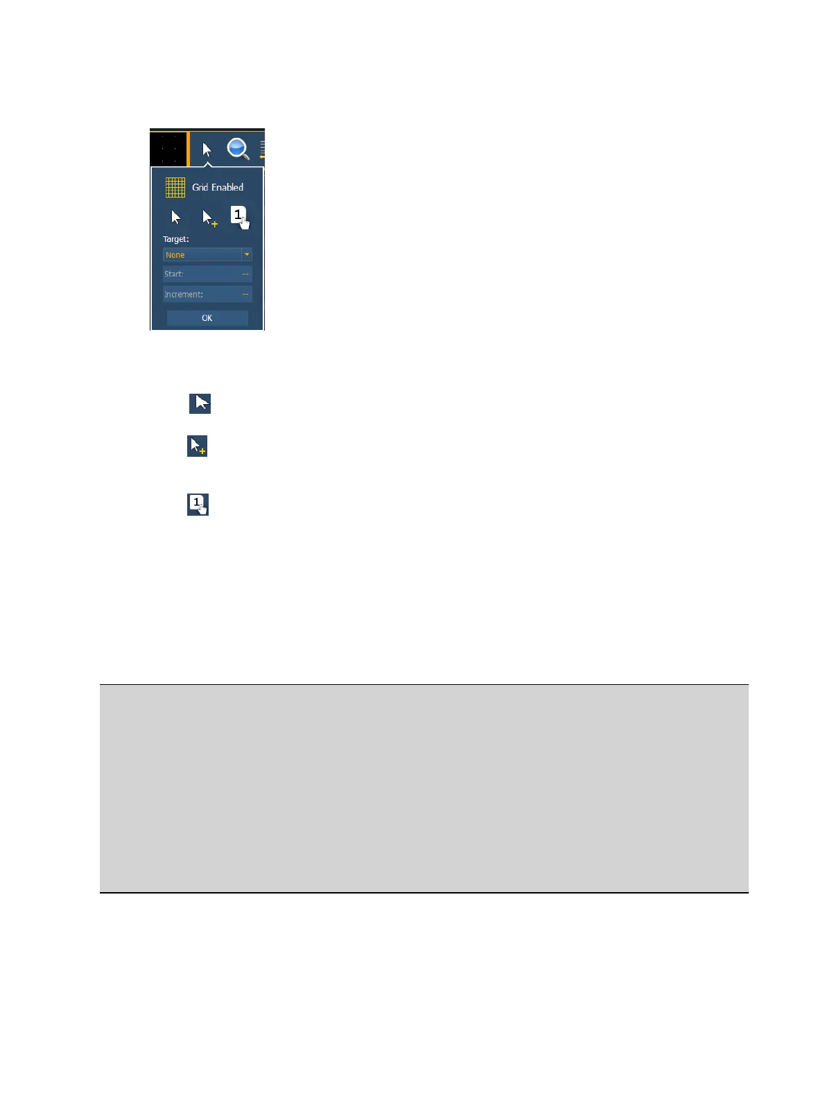 Grid Enabled - toggles between a grid being displayed and no grid. With the grid enabled,