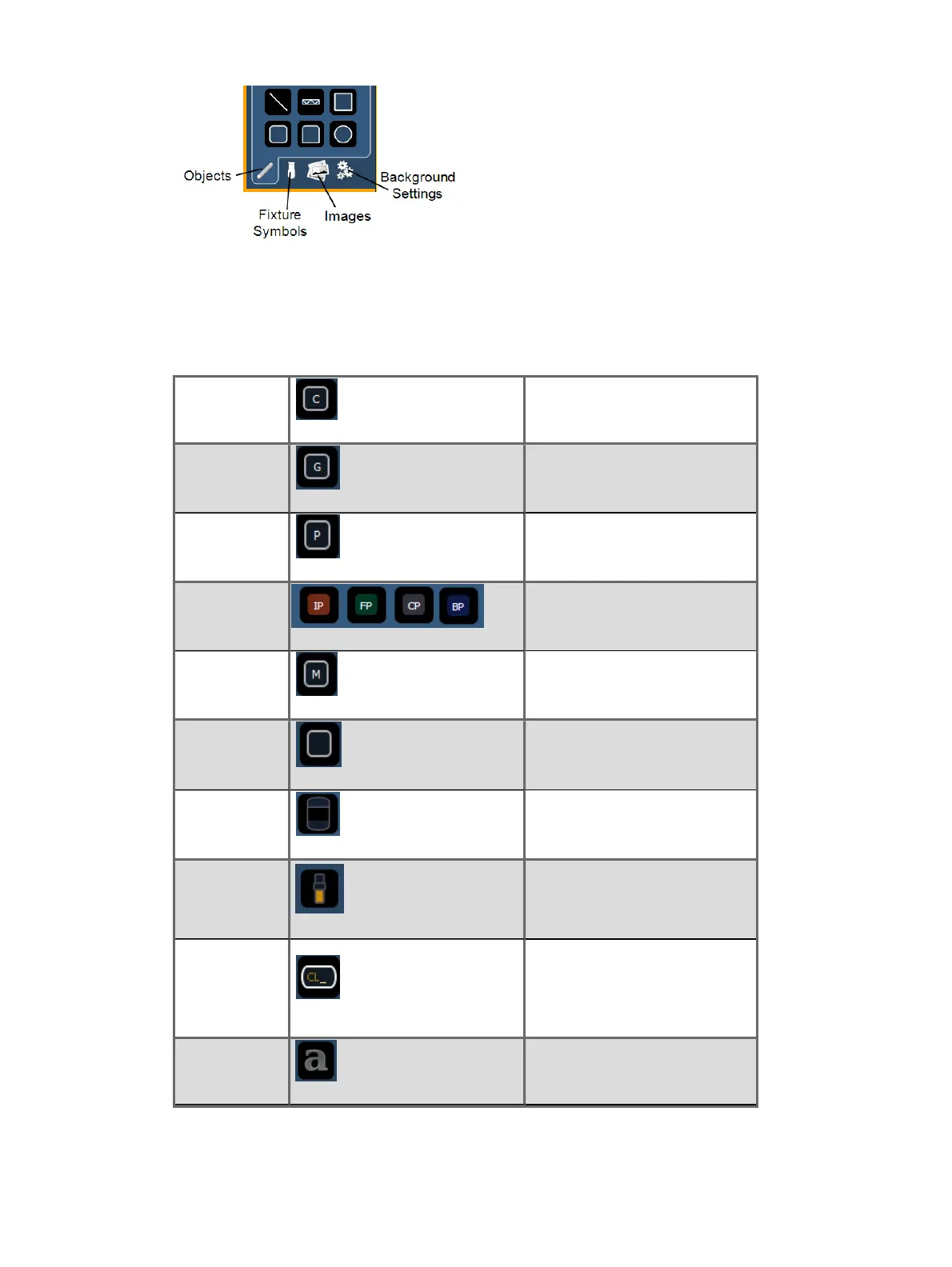 The following table contains the various magic sheet objects located in the first tab, and a brief