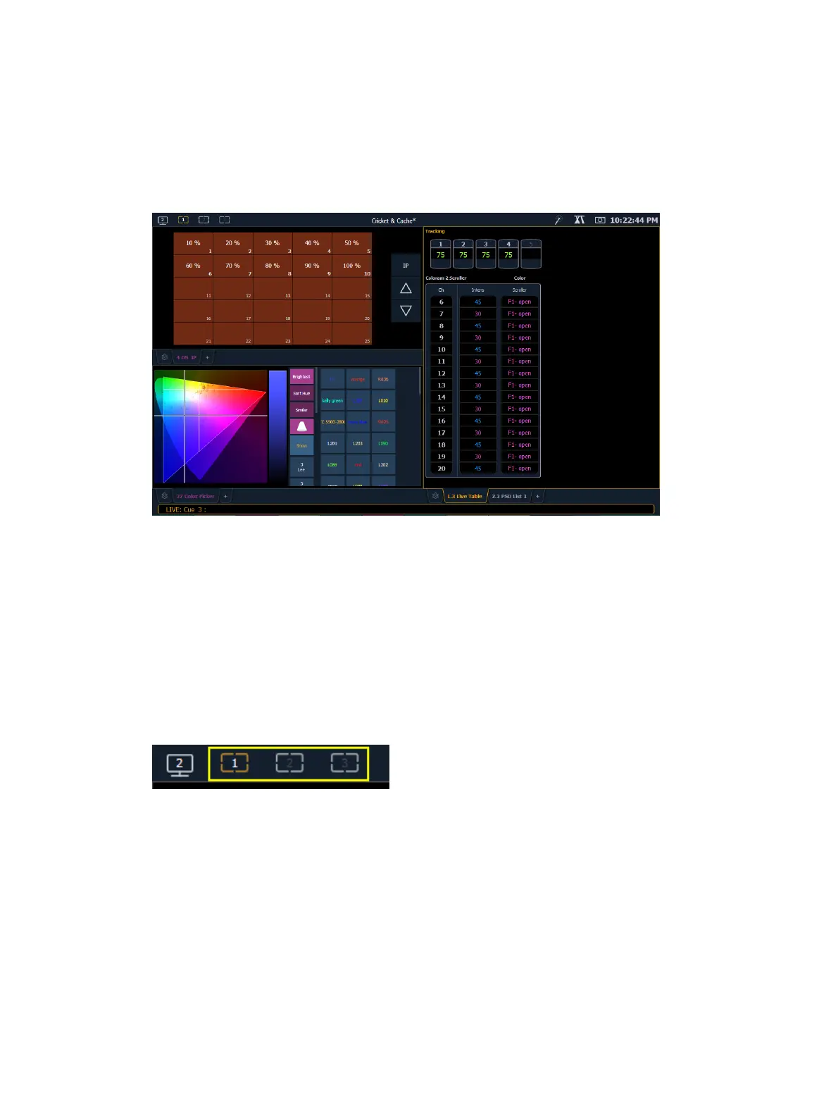 These three monitor icons are used to switch between each monitor’s available workspaces.
