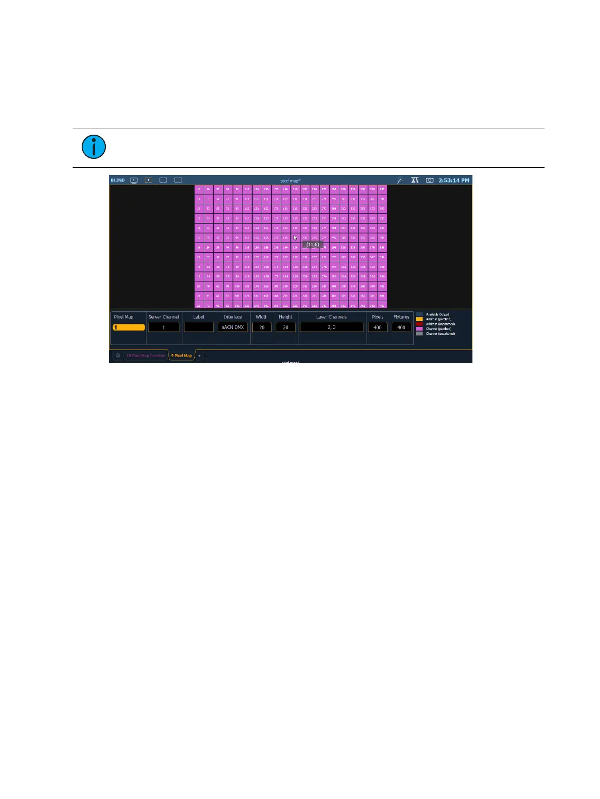 In this display you can also label the pixel map, assign the interfaces it will use, and adjust the