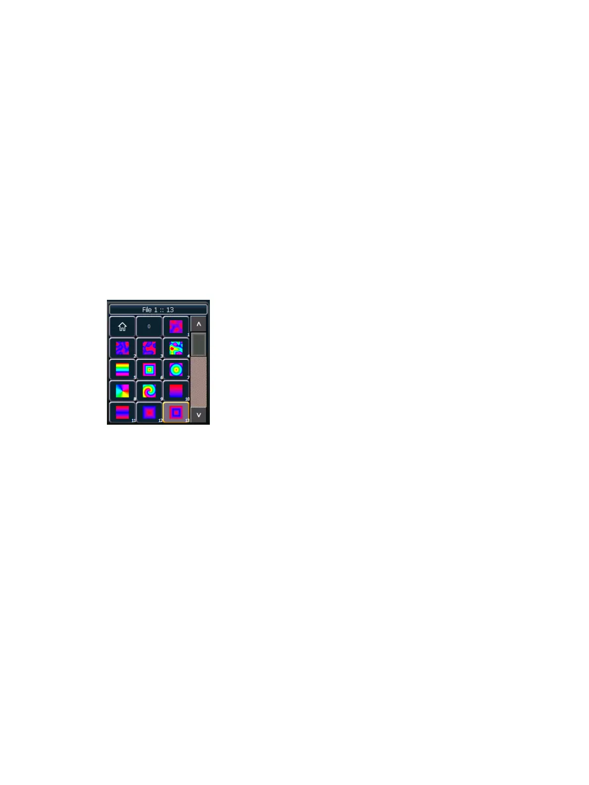 The effects are stored in file 1. File 1:0 is a home position of no effect. 1 through 3 are perlin