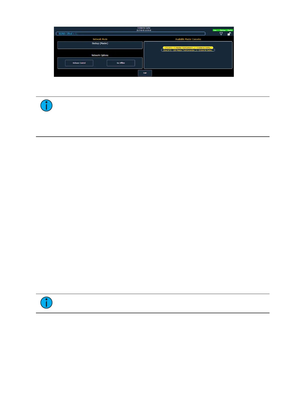 backup. If the master console fails, the second console will take control with full show data