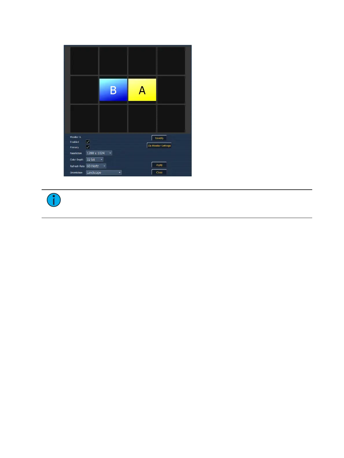 {Elo Monitor Settings} - opens the properties window for the monitor. See