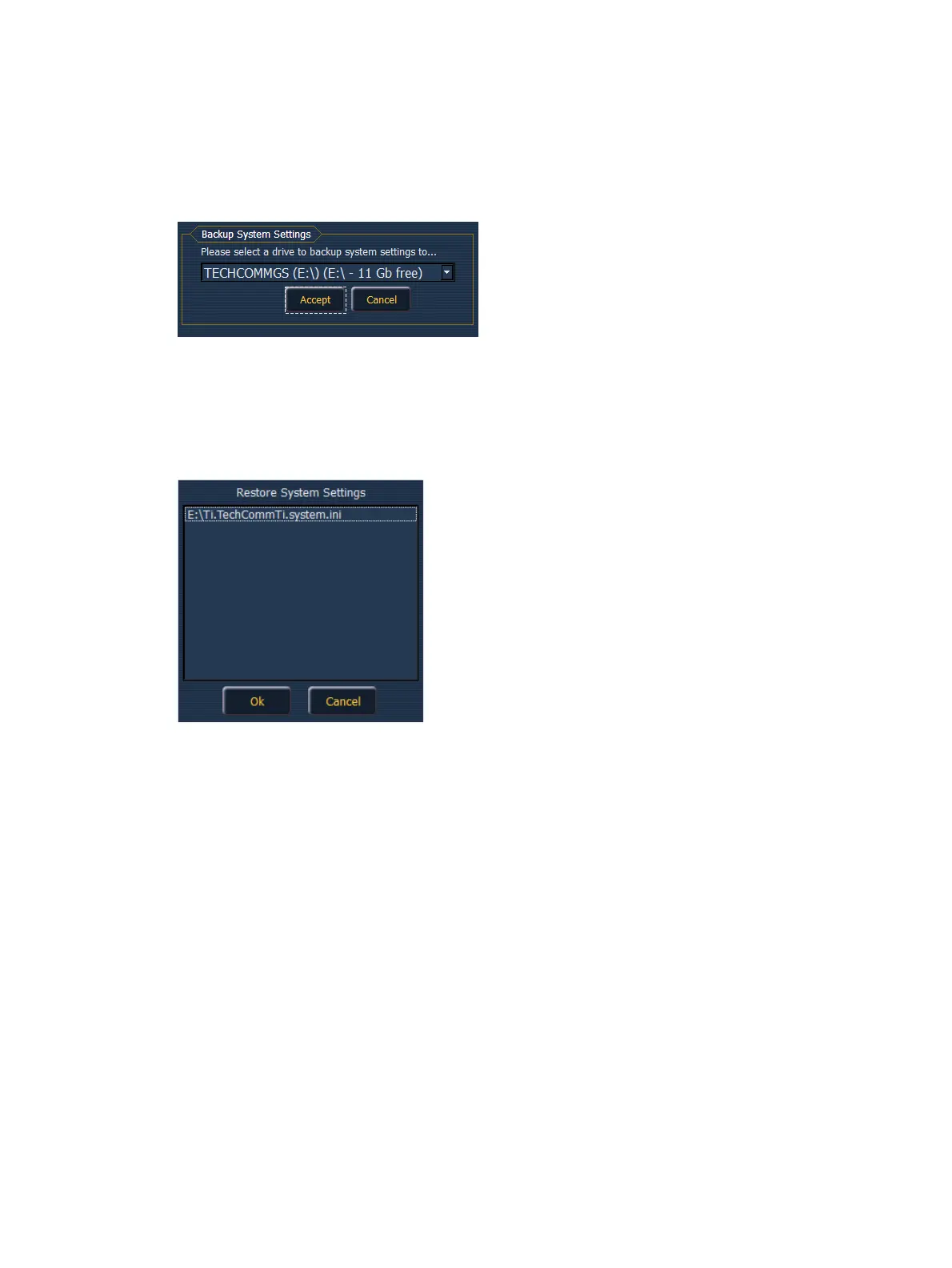 {Backup System Settings} will open a window that allows you to save .ini file to a selected drive.