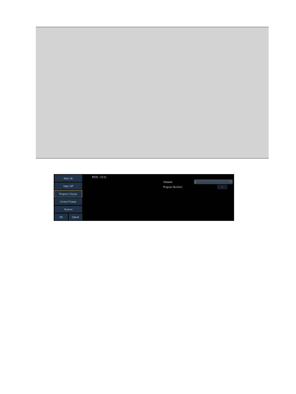 parameters. When finished configuring the program change event, press {OK} to store the