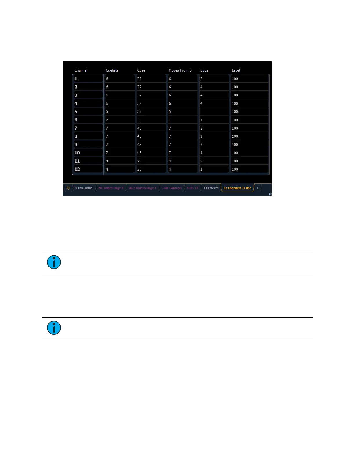 trends for multiple cues, submasters, palettes, or presets at one time. Cues/ record targets are