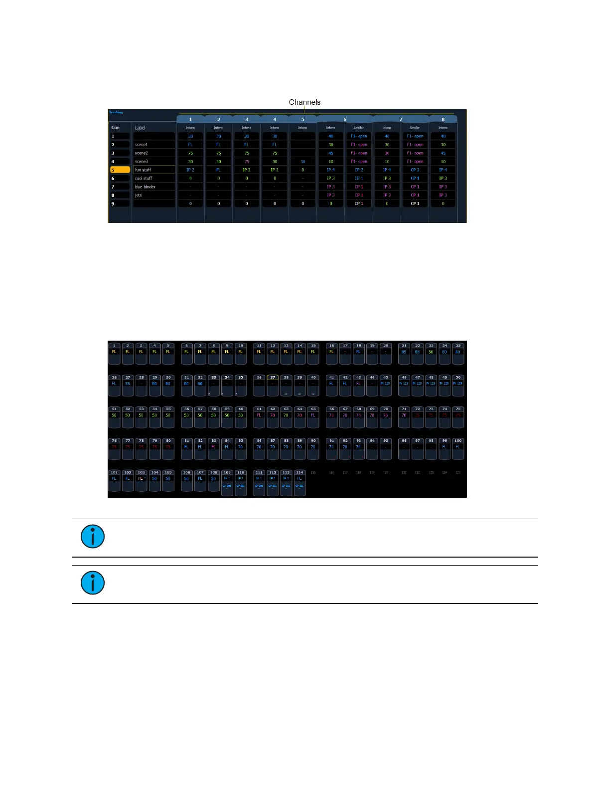 Several channels in the image are moving lights (possessing more parameters than just