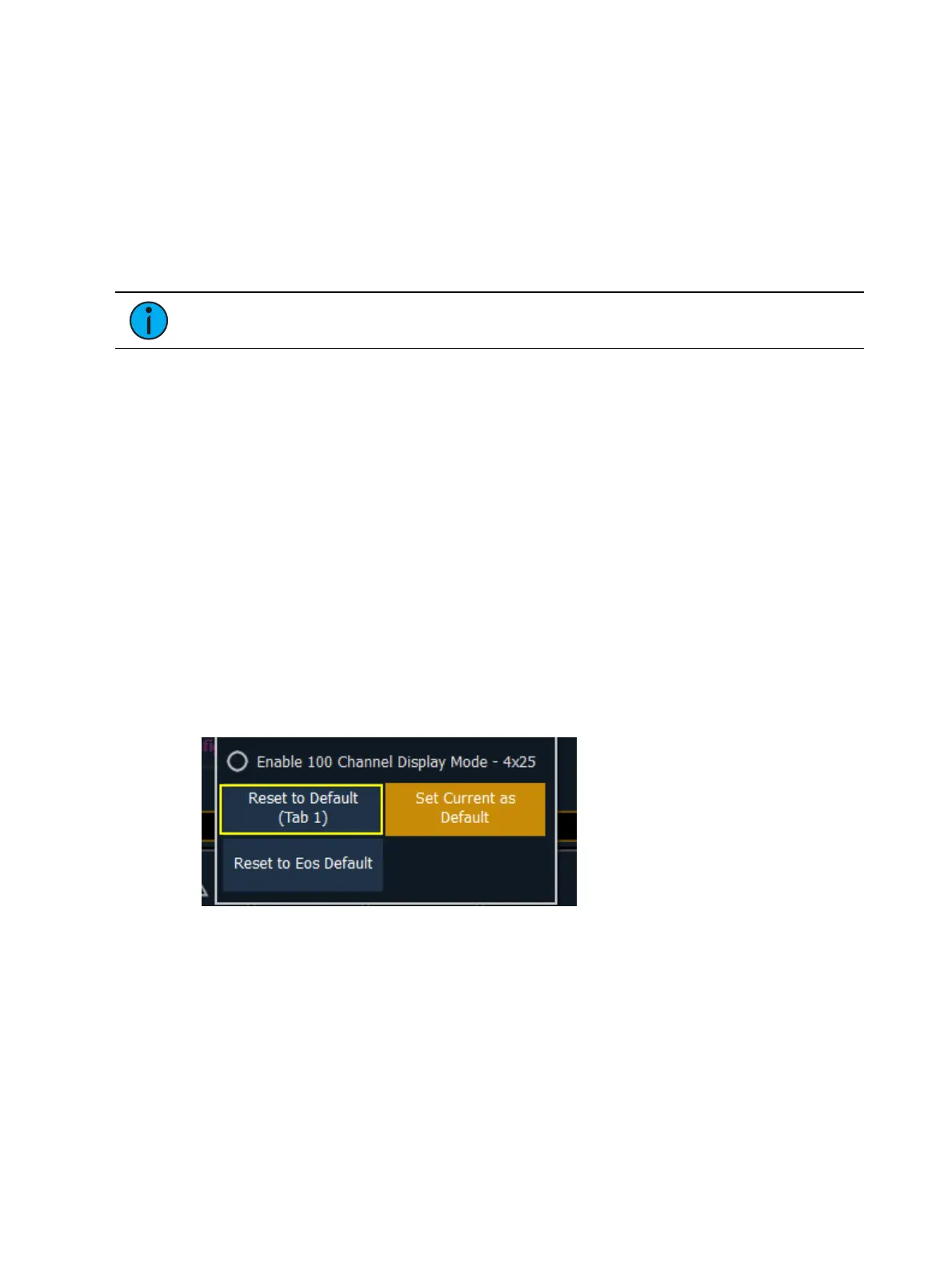 Reset to Eos Default - Restores the settings to Eos defaults.