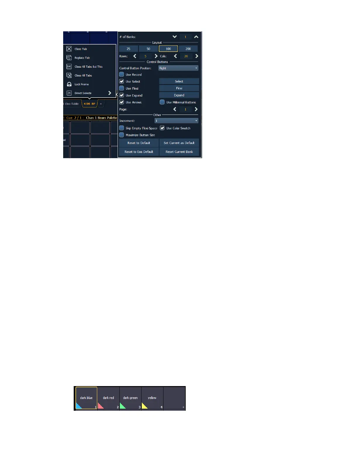 25, 50, 100, 200 - allows you to select the number of buttons that will display per bank.