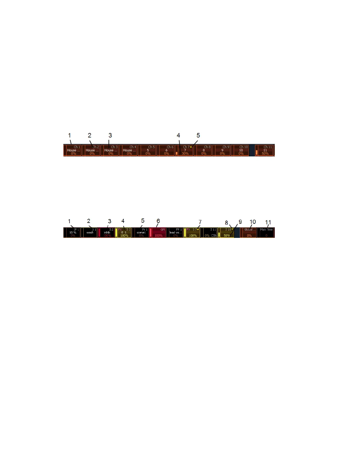 8. Down arrow indicates that there is a lower level currently set for the channel and that the