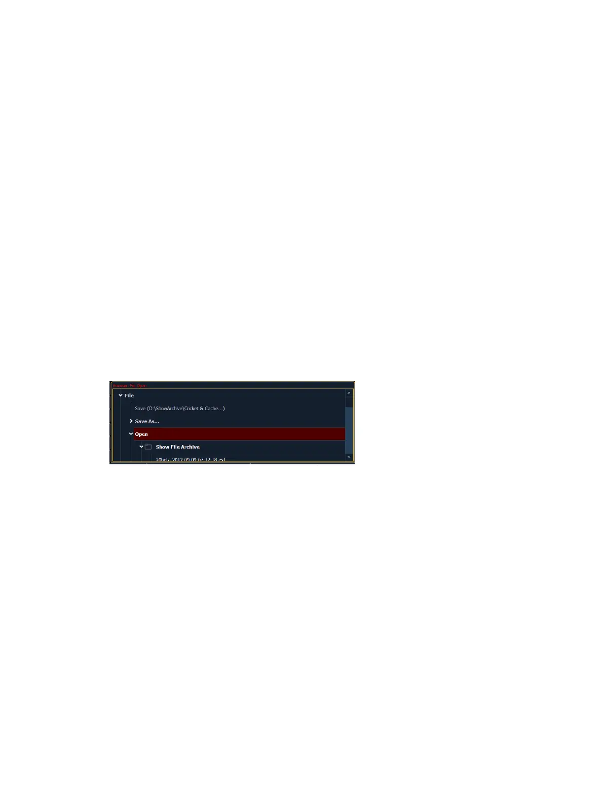To open a show file from the Show File Archive, navigate within the Browser to: File>