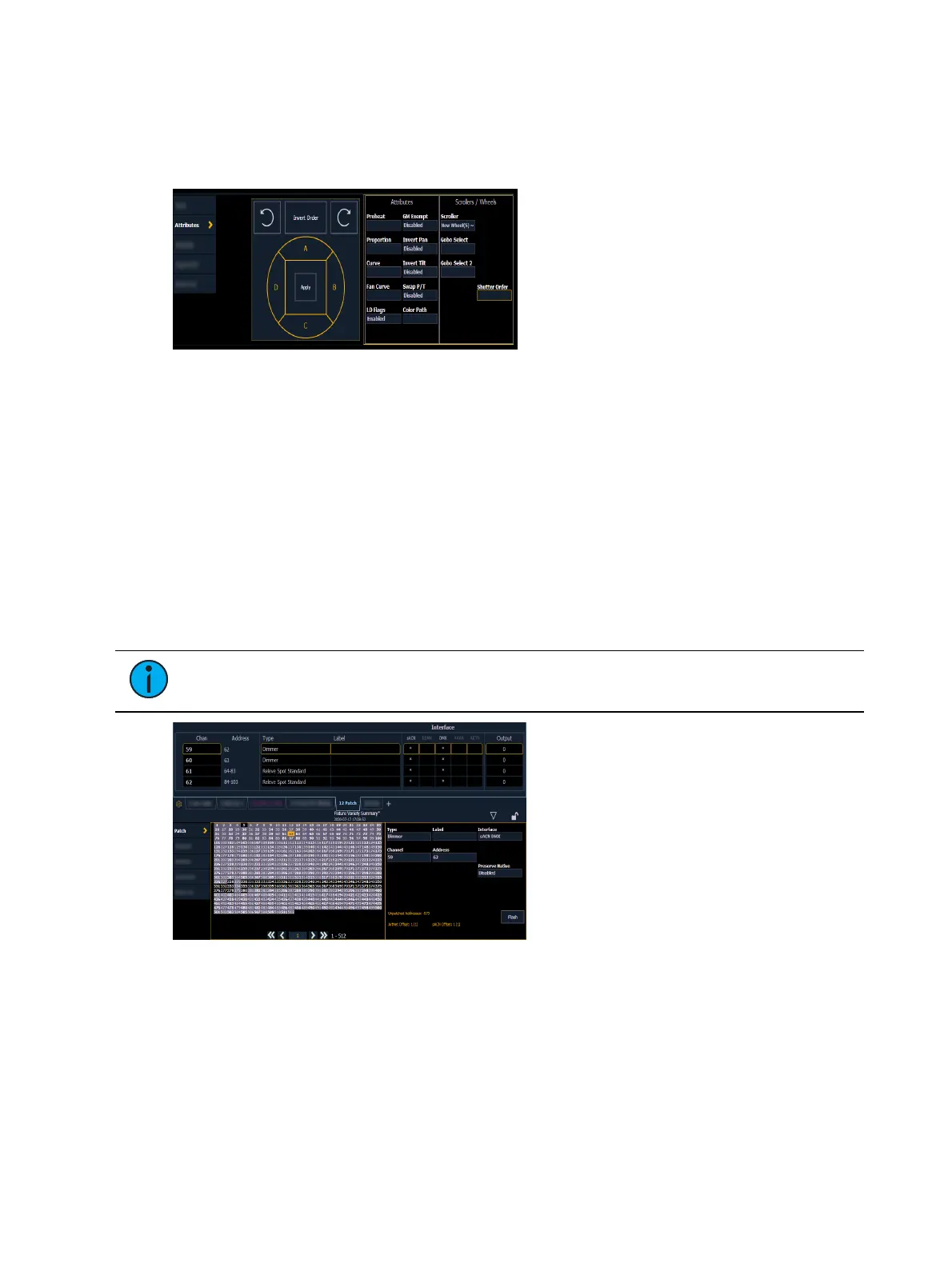 With patch open, Eos defaults to this section. It provides access to data input fields that you