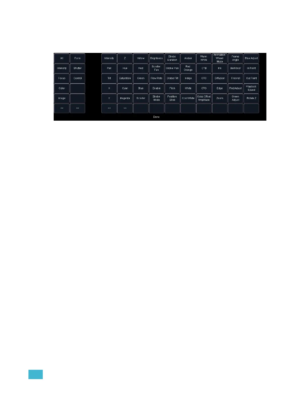 a: Use the {>>} and {<<} buttons to scroll through the available parameters (in