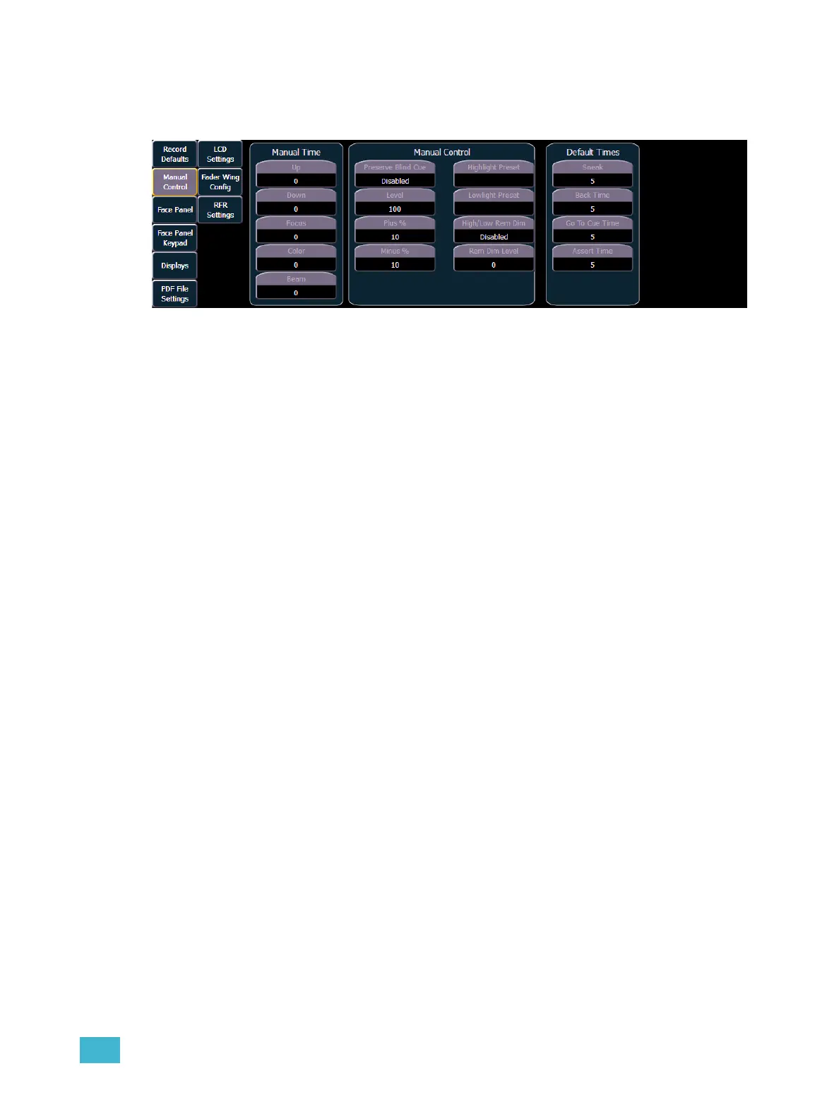 This section allows you to specify the values for certain buttons or settings used in manual control.