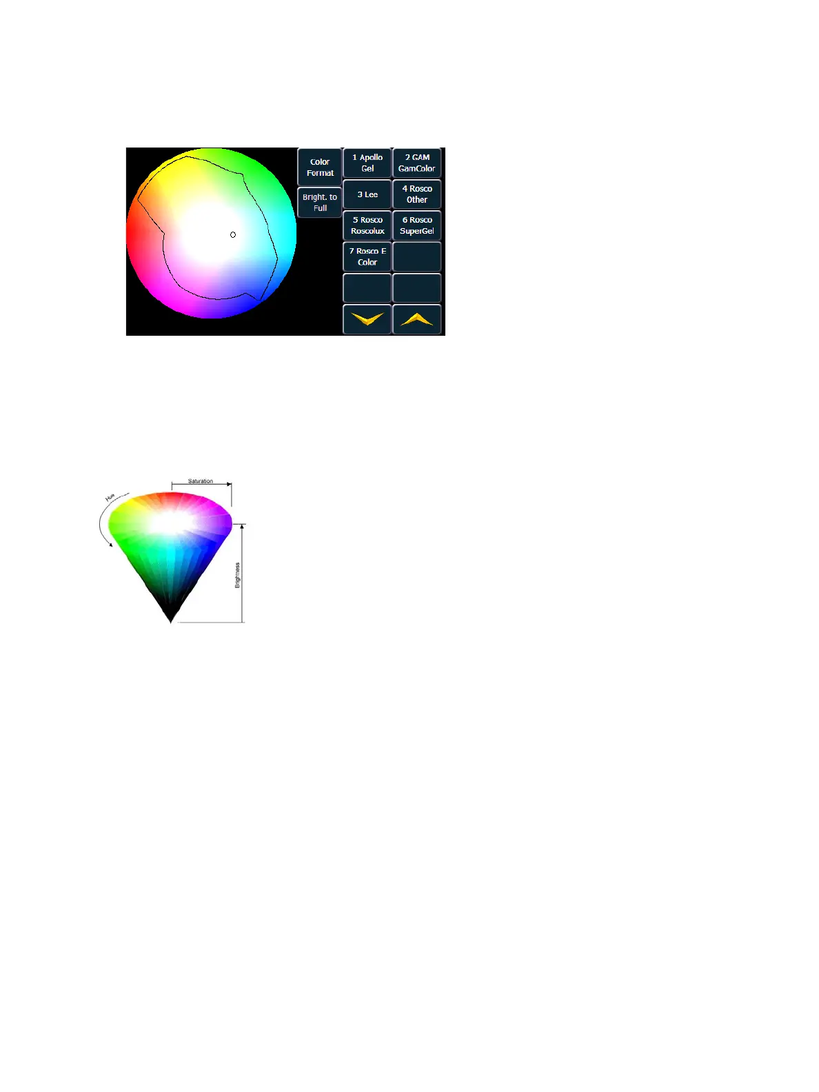 the right. Selecting a specific gel will also produce the hue and saturation value.