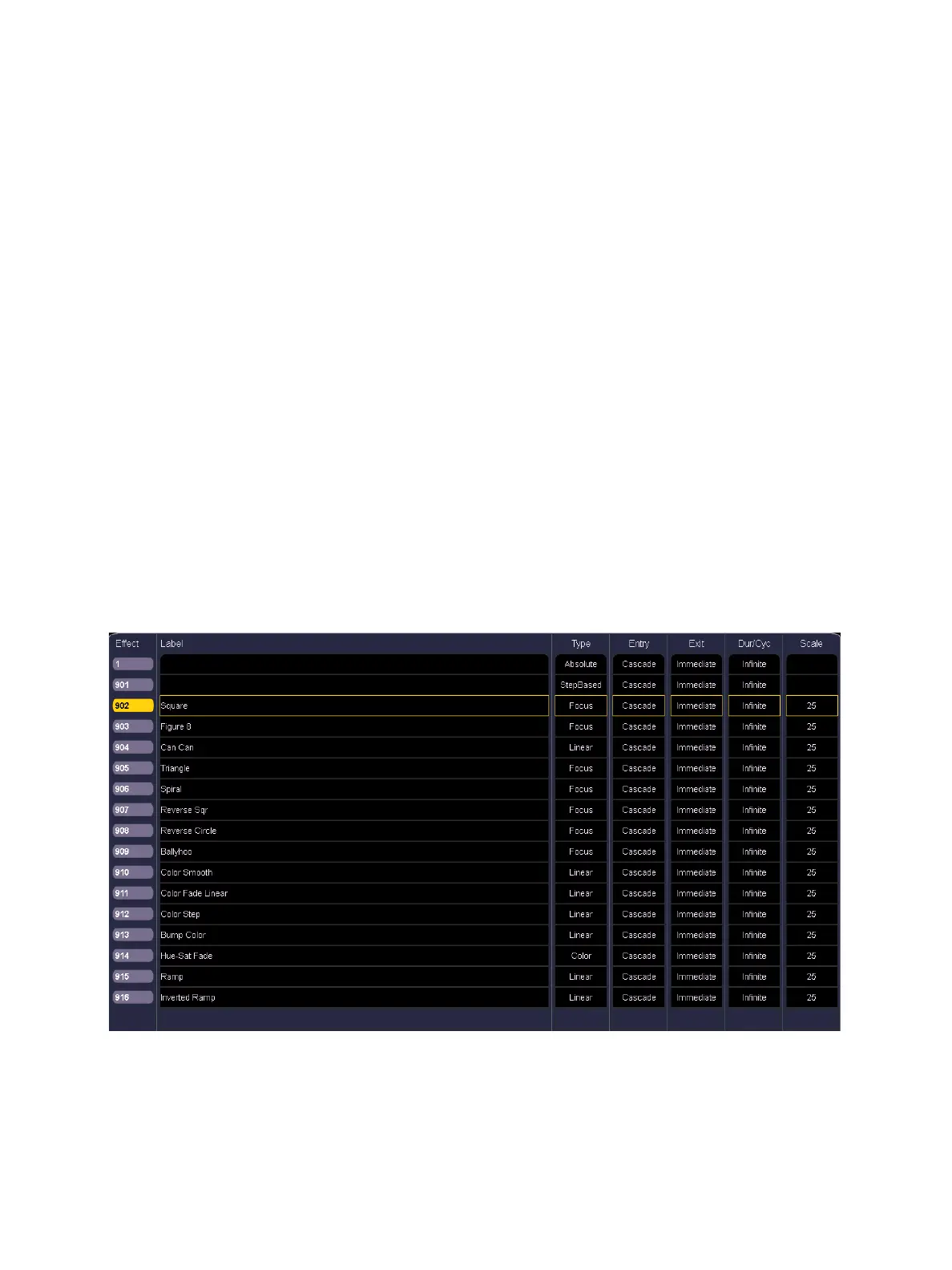 are used in cues. Effects also have cue level overrides, which allow you to use an effect in multiple