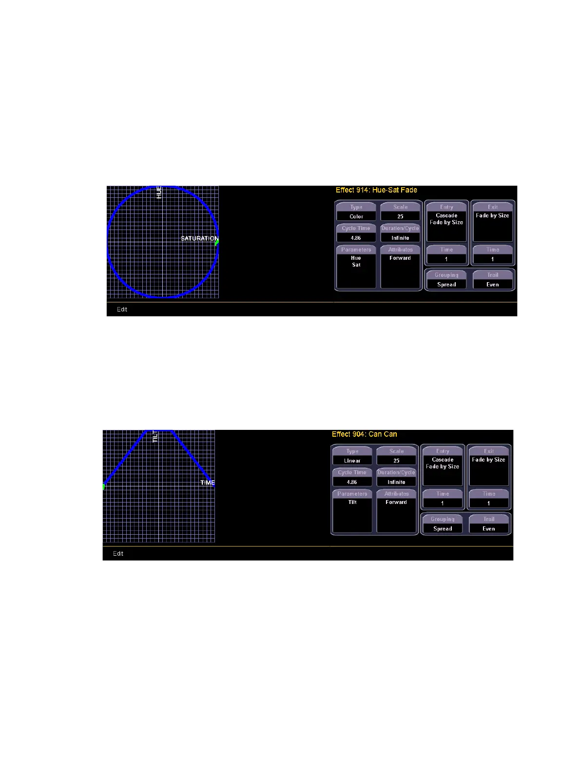 represented in the horizontal and vertical axes of the graph in the effects editor. The {Parameters}