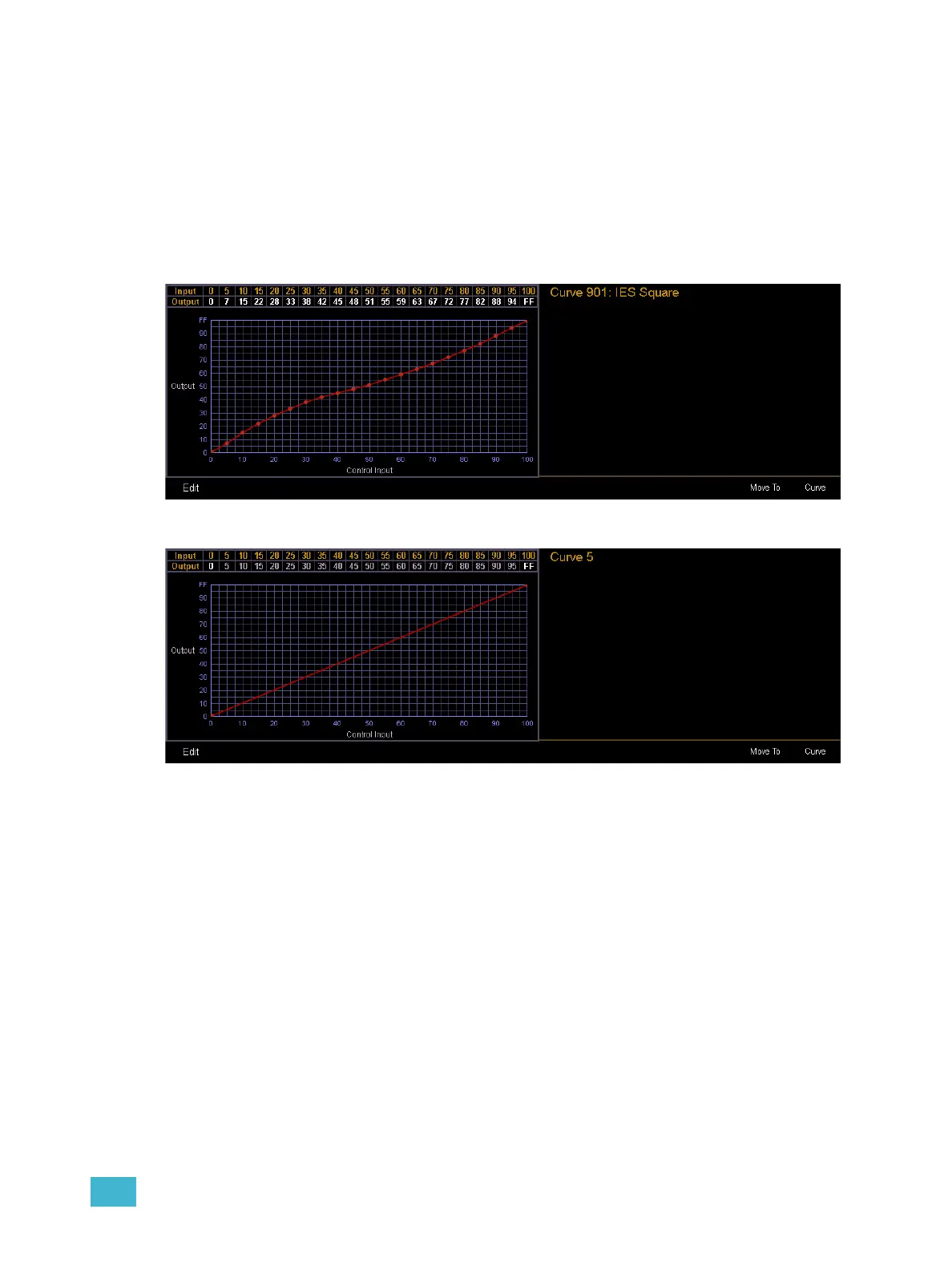 If the curve is already stored, the contents are displayed in the CIA. If this is a new curve, a linear