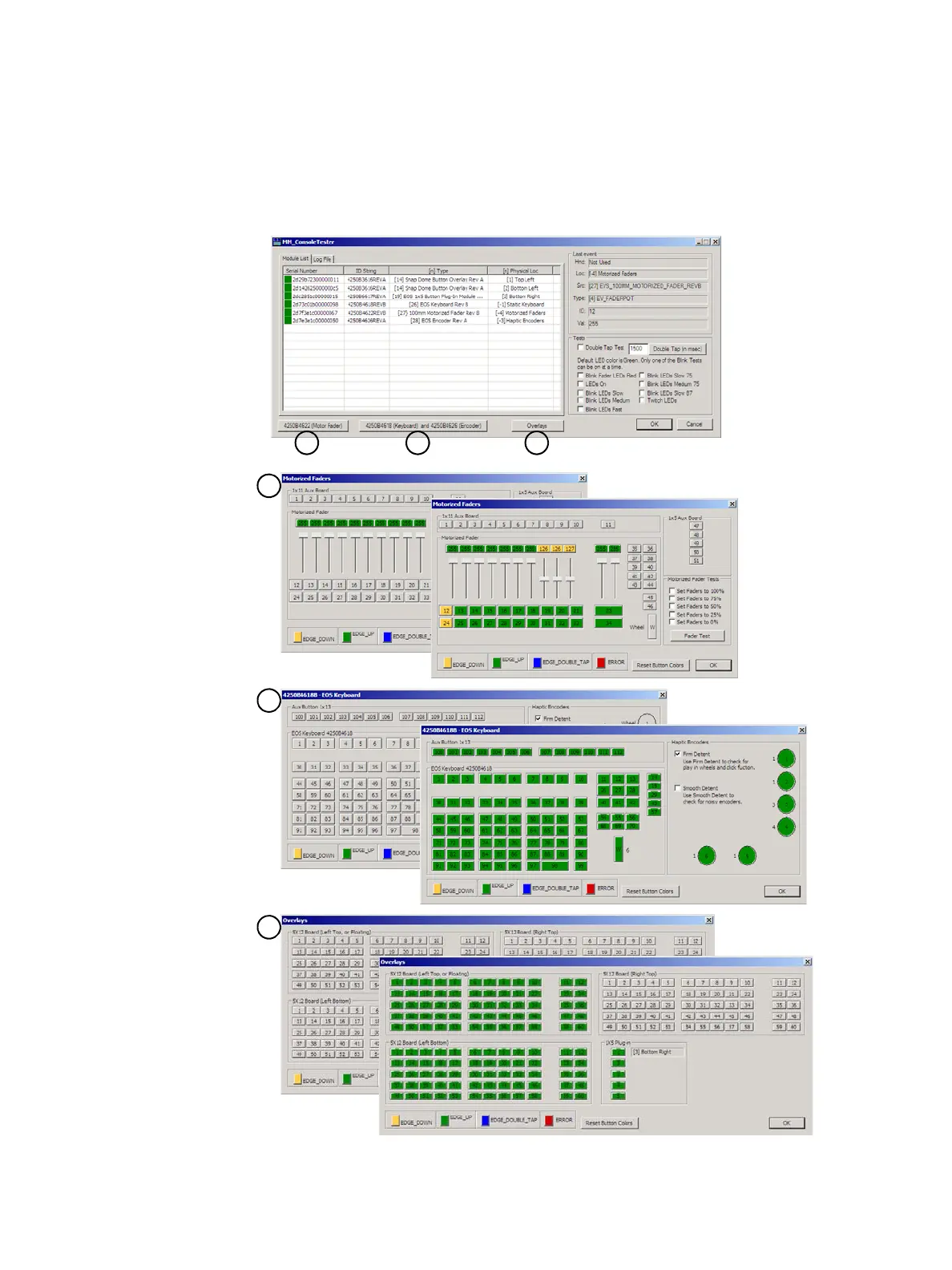 Face Panel Test provides a way to verify the functional state of all of the keys, encoders and sliders