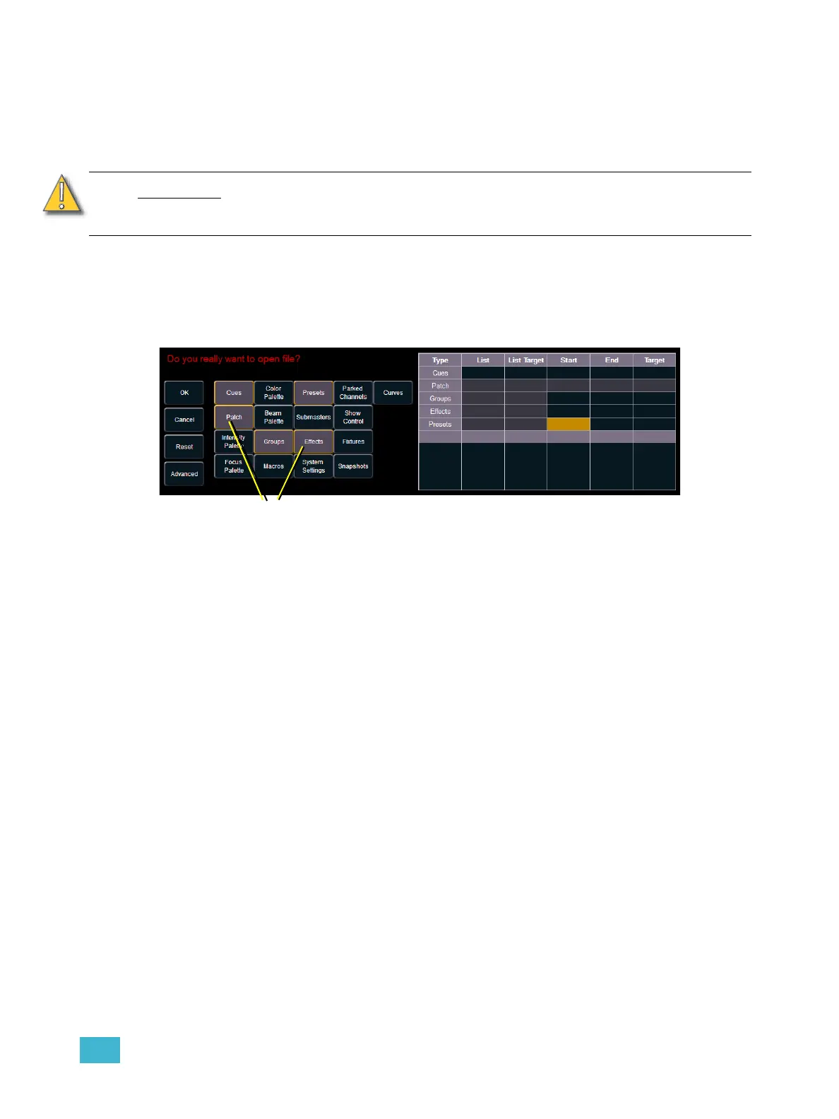 see the complete list of show components, press the {Advanced} key in the partial show loading
