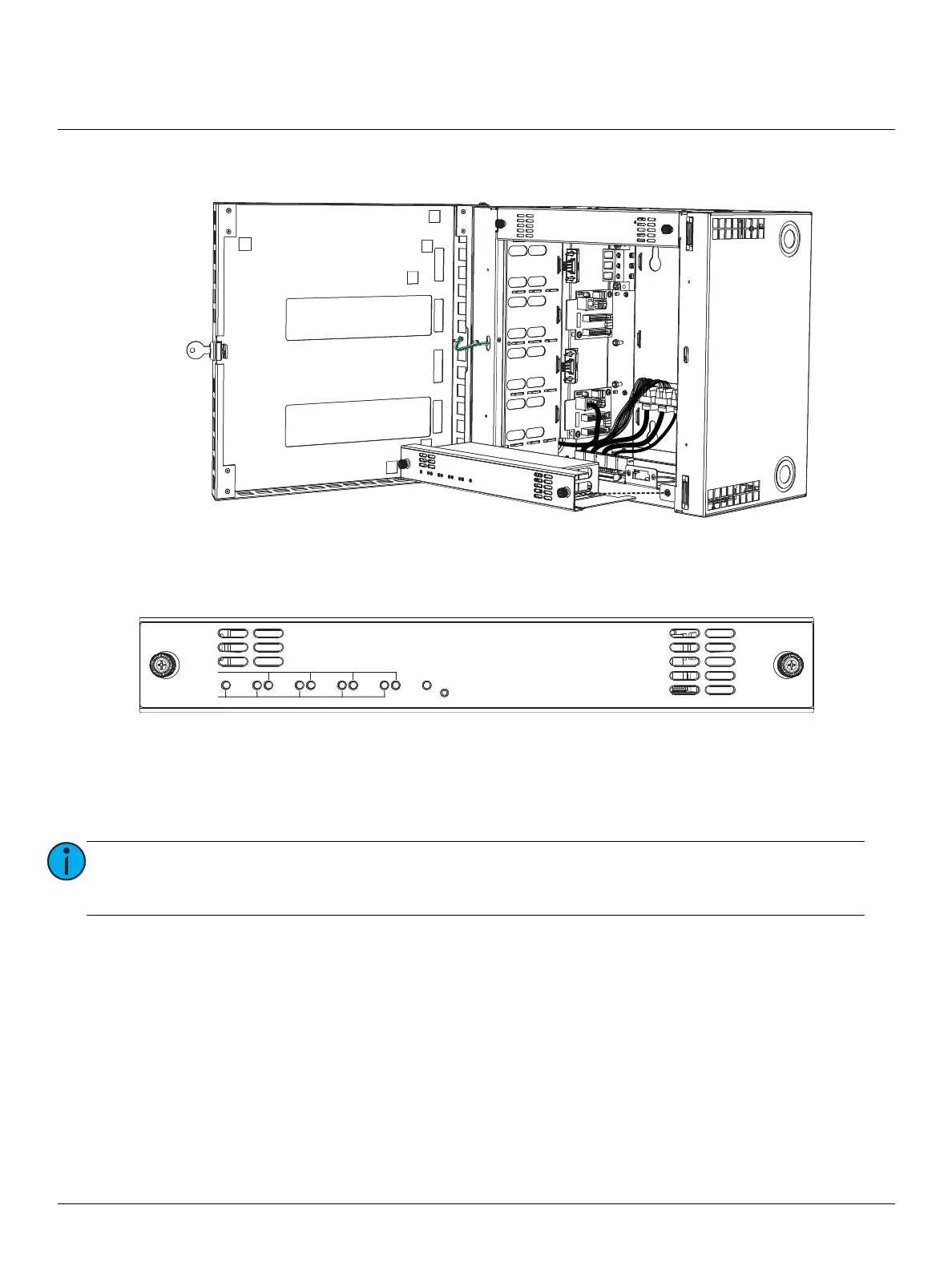 7: Install the Ethernet switch option module into the enclosure and secure it in place using the captured