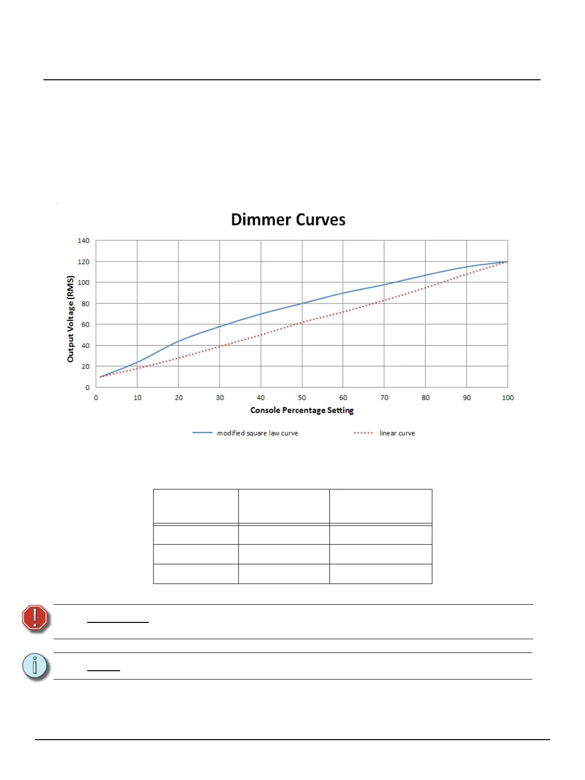 There are three available dimmer curves that can be set on the dimmer. These curves can only be set