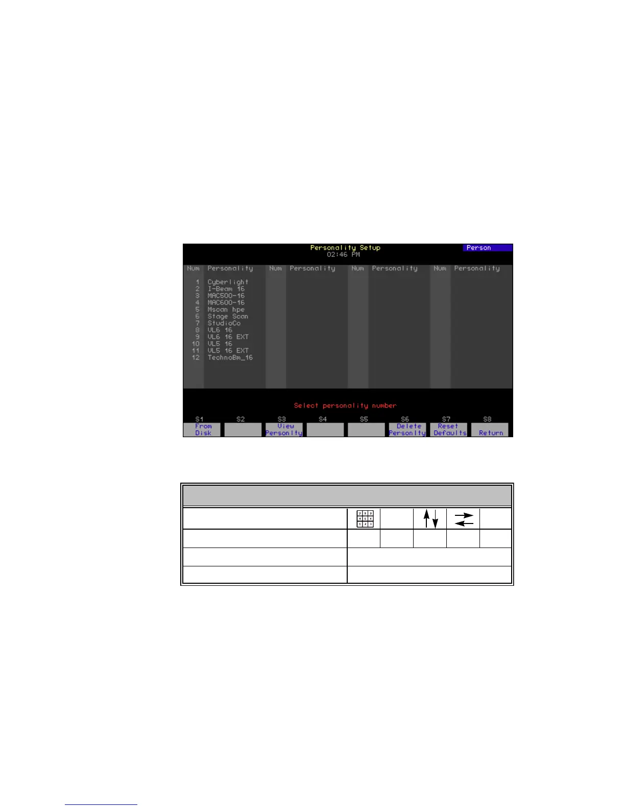 1. Press [Setup] [1][5] [Enter] to display the Moving Lights Functions